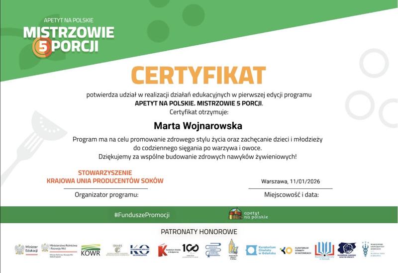 „Mistrzowie 5 porcji” – ogólnopolski program edukacyjny...