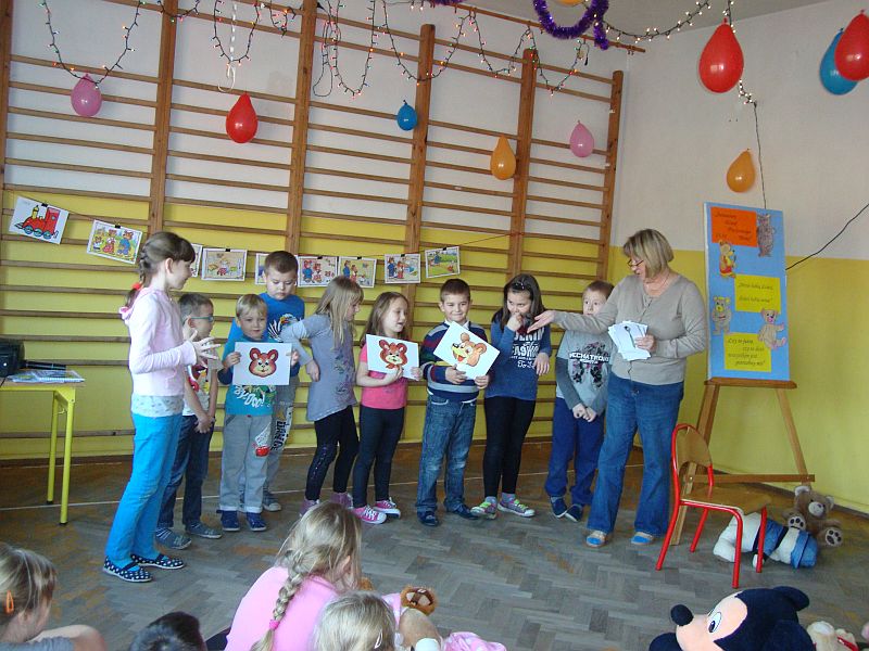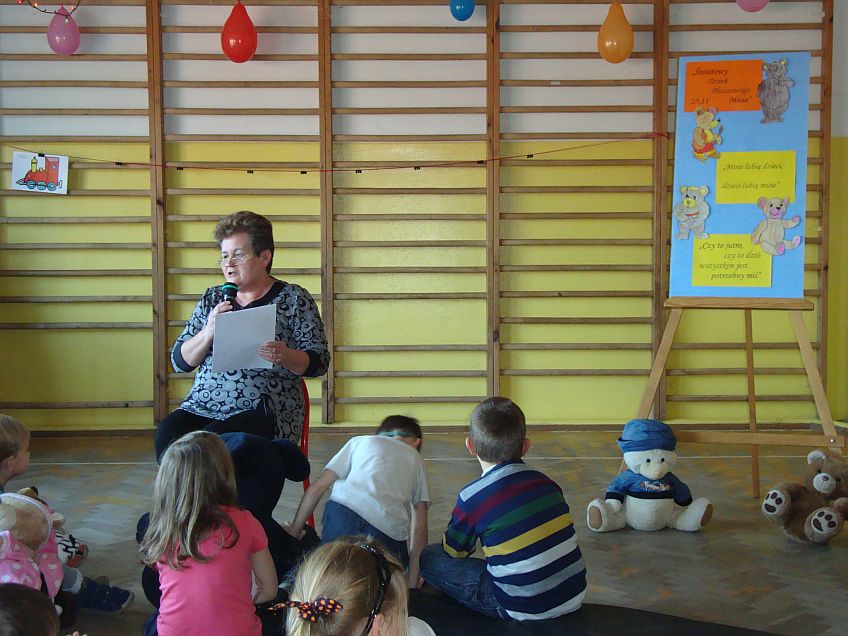„Dzieci lubią misie, misie lubią dzieci” - pod takim hasłem 2 grudnia obchodziliśmy w naszej szkole Światowy Dzień Pluszowego Misia. W spotkaniu uczestniczyła pani dyrektor Ewa Romańska i rodzice. Spotkanie rozpoczęło się od poznania historii Pluszowego Misia, następnie dzieci czytały wiersze, słuchały i śpiewały „misiowe” piosenki. Pod kierunkiem pani Małgorzaty Zgierskiej świetnie bawiły się z bajką „Złotowłosa i trzy misie”.