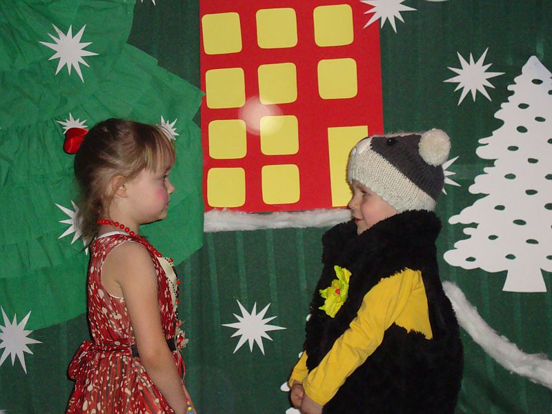 Mali artyści bardzo przeżywali „Spotkanie z Mikołajem” i swój występ. Poradzili sobie doskonale. Oglądający byli zachwyceni grą maluchów i ich starszych kolegów.
