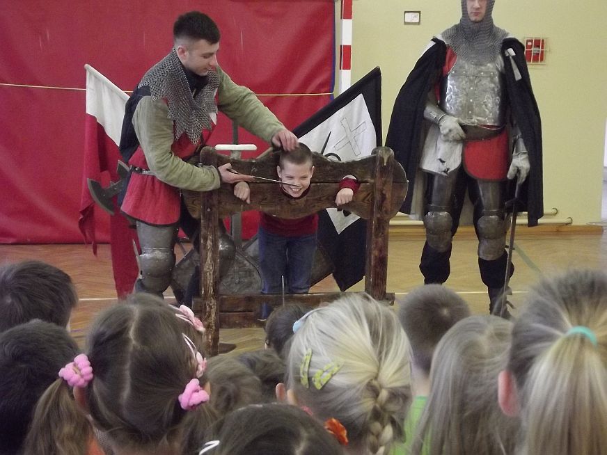 Chętni uczniowie wzięli udział w scenkach z życia ówczesnych warstw społecznych, a było to miedzy innymi: pasowanie na rycerza, pojedynek, zakuwanie w dyby, karanie kłamców i złodziei.