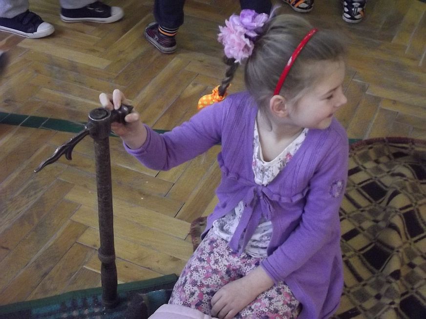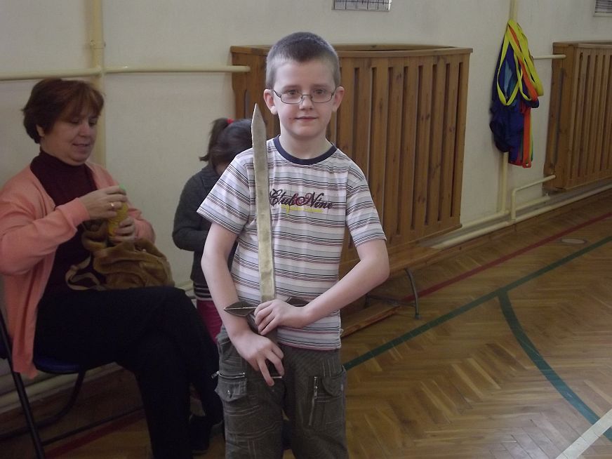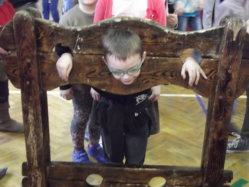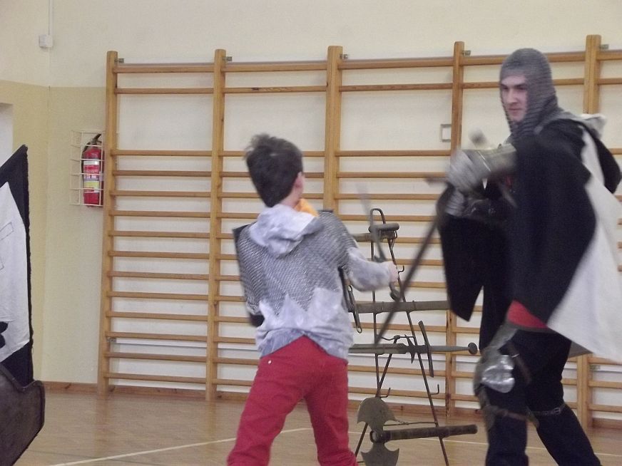 Po pokazie dzieci mogły obejrzeć różne rodzaje broni, a także zbroję rycerską. Każdy mógł wziąć do ręki berło, miecz, tarczę, maczugę, buzdygan, nałożyć hełm na głowę, a nawet stanąć do walki z prowadzącymi. Nie brakowało chętnych uczniów do zakuwania w dyby.