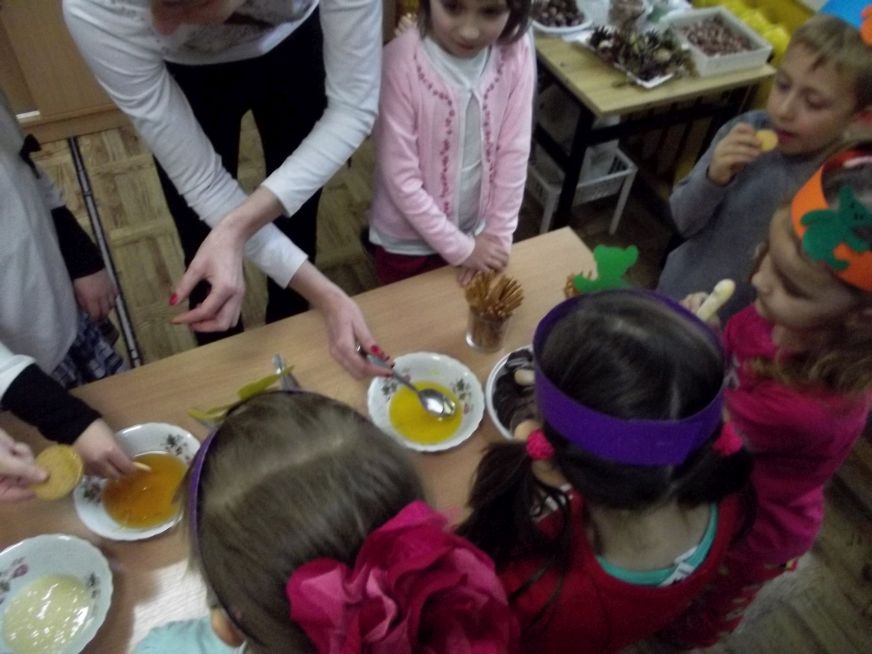 Na koniec imprezy dzieci zostały zaproszone na „małe co nieco” czyli na degustację miodu i „misiowych” ciasteczek.