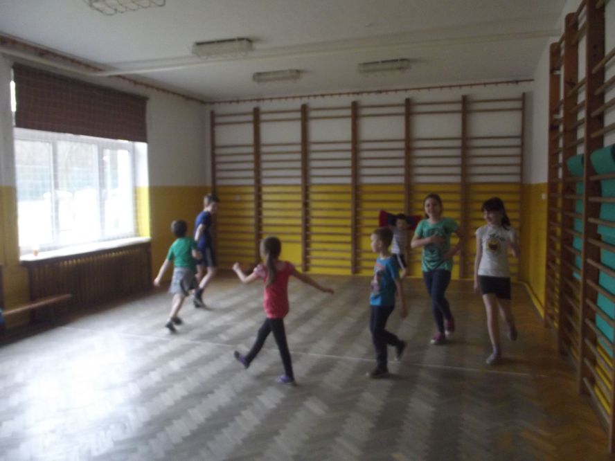 To miała być zima na sportowo. Niestety , zabrakło śniegu i lodu. Ale od czego nasza fantazja? Były zabawy na sali gimnastycznej – „Jestem muzykantem”, „Jedzie pociąg”, „Autobus” i wiele, wiele innych. A na zakończenie wielki mecz piłki siatkowej. Było fajnie.
