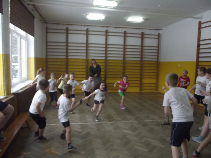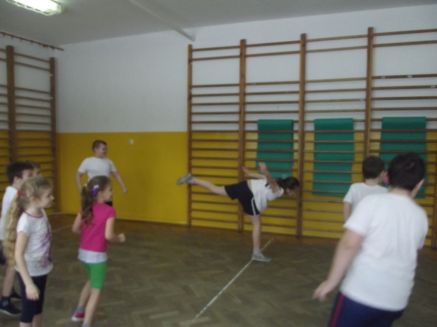 Wiersz „Miss Fit”, którym rozpoczęło się spotkanie na sali gimnastycznej uświadomiło uczniom, że prawidłowe nawyki żywieniowe i aktywność fizyczna to warunki dobrego stanu zdrowia i zdrowego stylu życia. Piramida Zdrowego Żywienia, której podstawą jest aktywność ruchowa, stała się punktem wyjścia do rozegrania szkolnych zawodów sportowych.