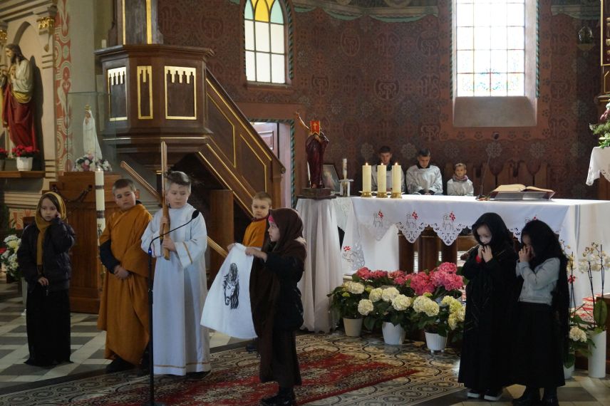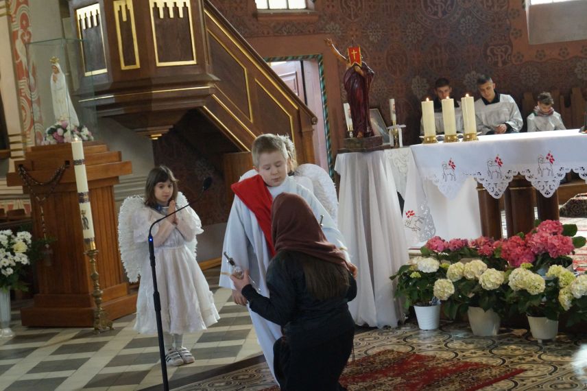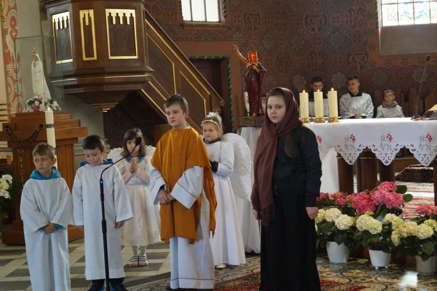 Dzieci zaprezentowały w środowisku lokalnym swoje umiejętności artystyczne oraz podzieliły się radością ze zmartwychwstania Pana Jezusa.