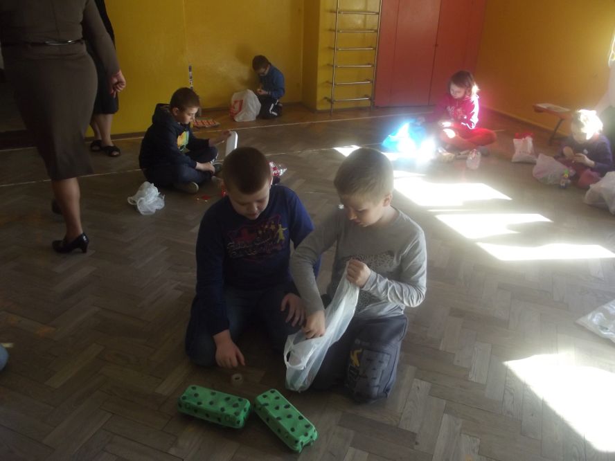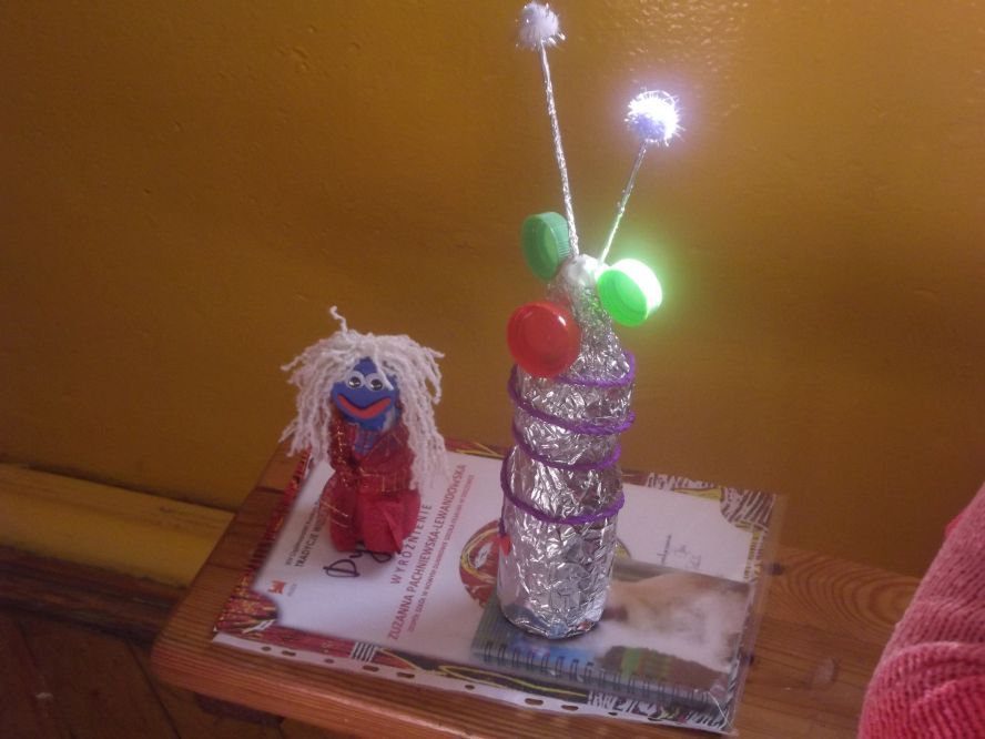 W części 2 „Z ekologią na Ty”- coś z niczego robimy i świetnie się bawimy-uczniowie podczas zajęć warsztatowych wykonywali różne przedmioty i zabawki z materiałów recyklingowych; powstały prawdziwe dzieła sztuki: oryginalne i pomysłowe.