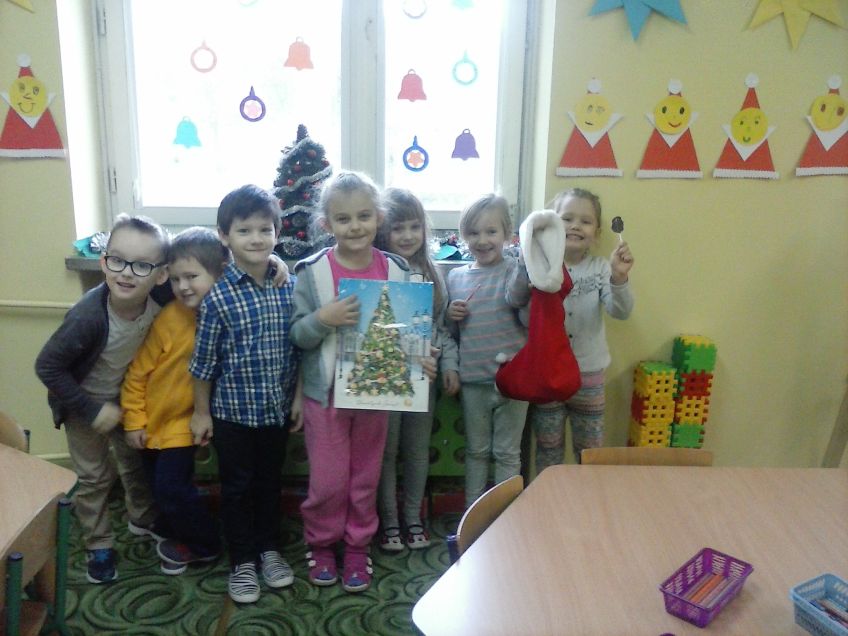 Koniec listopada i początek grudnia to czas intensywnej pracy w klasie 0B. Najpierw wszyscy niecierpliwie czekali na andrzejkowe wróżby. W imieniny Andrzeja wróżyliśmy kim zostaniemy w przyszłości i gdzie wybierzemy się w podróż. Poznawaliśmy znaczenie swoich imion i wrzucaliśmy grosze do studni życzeń - zabawy i śmiechu było co niemiara. Po Andrzejkach powiesiliśmy wielka skarpetę i codziennie do niej zaglądaliśmy - czy św. Mikołaj będzie o nas pamiętał? Okazało się, że tak. W Mikołajki skarpeta zapełniła się prezentami i słodyczami. Teraz przygotowujemy się do konkursu piosenki zimowej i świątecznej oraz do przedstawienia świątecznego "Spotkanie z choinką".