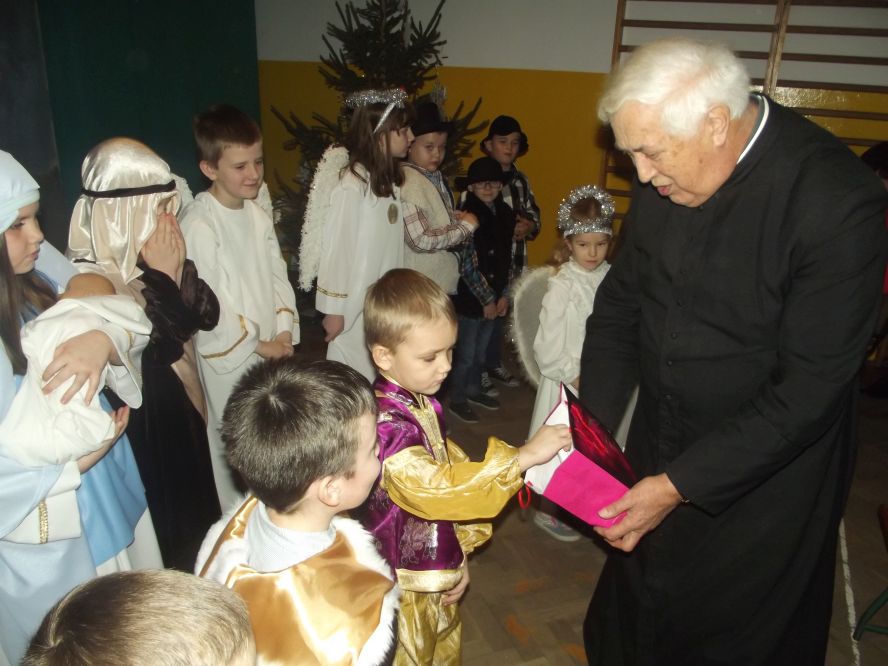 21 grudnia 2015 r. o godzinie 10 30 w Szkole Filialnej w Soczewce zostały wystawione Jasełka przez dzieci z kl. 0-III pod opieką p .Jolanty Kacprzak. W pięknie udekorowanej sali gimnastycznej zebrali się: Pani Dyrektor Ewa Romańska, pan Wicedyrektor Paweł Adamkowski, Sekretarz Gminy pani Teresa Szymańska, ks. Prałat Andrzej Kondracki, nauczyciele, pracownicy szkoły, rodzice i dziadkowie. Przedstawienie jasełkowe dostarczyło zebranej publiczności wiele emocji. Zgodnie z tradycją byli Maryja i Józef, była szopka bożonarodzeniowa, pasterze, trzej królowie piękne anioły. Przedstawienie oraz przepiękne kolędy i pastorałki zostały ciepło przyjęte przez zebranych i nagrodzone gromkimi brawami. Po przedstawieniu Pani Dyrektor złożyła wszystkim najserdeczniejsze życzenia z okazji zbliżających się Świąt Bożego Narodzenia, ks. Prałat pochwalił dzieci za piękną grę aktorską. Następnie w świątecznych nastrojach podzieliliśmy się opłatkiem. Nie zabrakło oczywiście prezentów, każde dziecko otrzymało od św. Mikołaja upominek, który z pewnością będzie długo przypominał o tym wyjątkowym dniu. Nie zapomnieliśmy również o zbliżających się imieninach Pani Dyrektor. Moc gorących życzeń oraz bukiet róż wręczyli uczniowie w imieniu całej społeczności szkolnej.