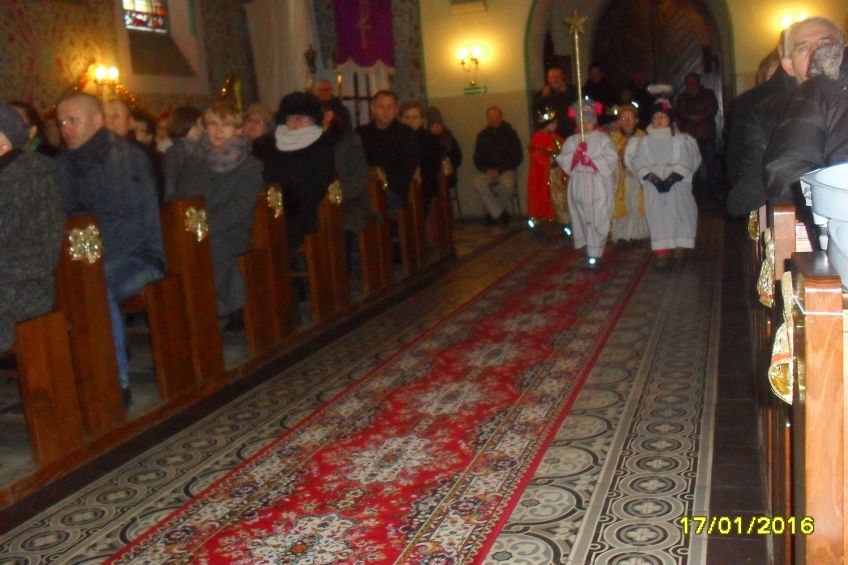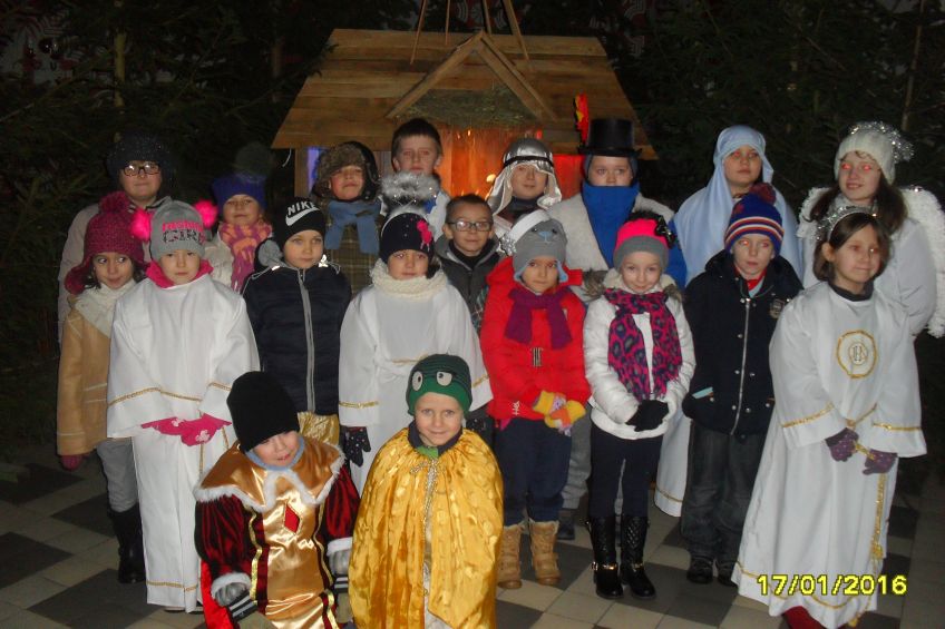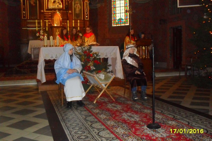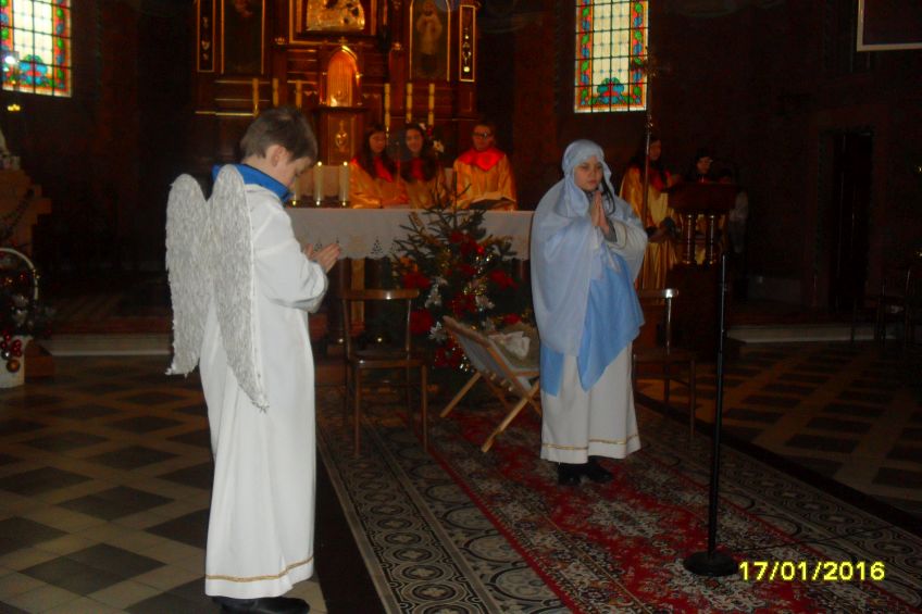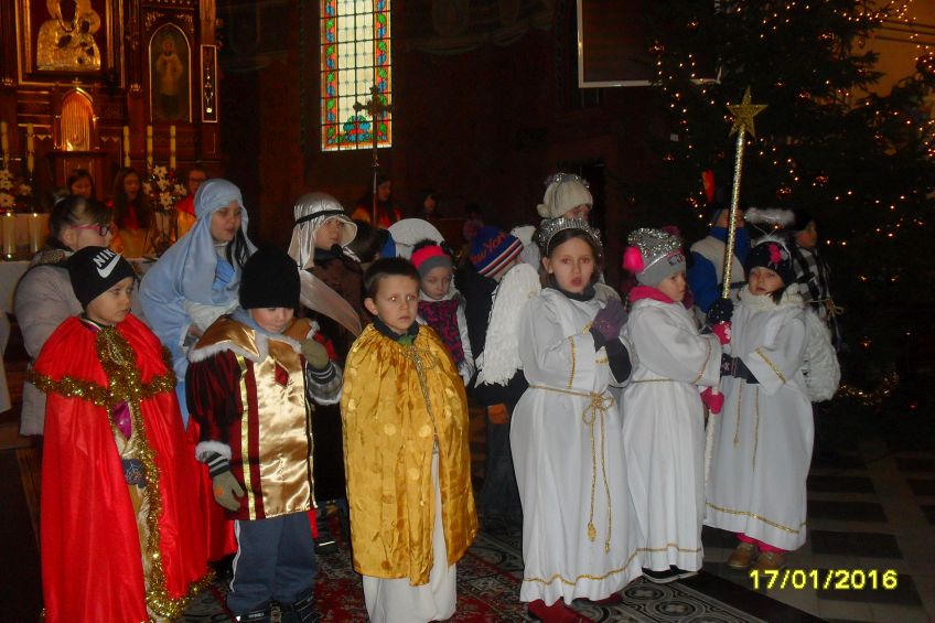 17 stycznia 2016 r. uczniowie kl. 0-III Szkoły Filialnej w Soczewce pod opieką p. Jolanty Kacprzak wystawili jasełka w kościele parafialnym. Przedstawienie odbyło się podczas Mszy św. O godz. 11.00 .Piękne stroje małych aktorów oraz Bożonarodzeniowy wystrój kościoła zapewniły miłe doznania wizualne. Oprawę muzyczną przedstawienia wzbogaciły kolędy zaśpiewane przez scholę parafialną pod kierunkiem p. Ireneusza Araszewskiego. Młodzi aktorzy swym występem przenieśli nas ponad 2000 lat , gdzie Archanioł Gabriel ogłaszał Maryi radosną nowinę , iż to właśnie ona urodzi światu Bożego Syna. Wspólnie z Maryją i Józefem martwiliśmy się z powodu braku ludzkiej wrażliwości, cieszyliśmy się wizytą pasterzy, a także zachwycili nas trzej królowie. Jasełka zostały przyjęte gromkimi brawami zarówno przez parafian jak i miłych gości , którzy licznie dopisali. Po zakończeniu Mszy św. dzieci zostały obdarowane przez ks. proboszcza słodyczami.