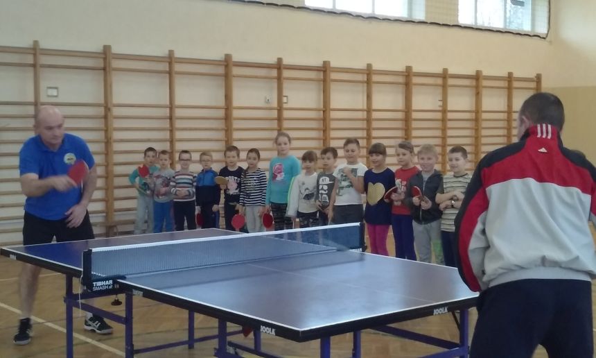 Na zajęcia przybyła liczna grupa „małych sportowców”. Dzieci pod kierunkiem trenerów uczyły się gry w tenisa stołowego. W doskonałych nastrojach i z dużym zahartowaniem spędziliśmy ten miły dzień.