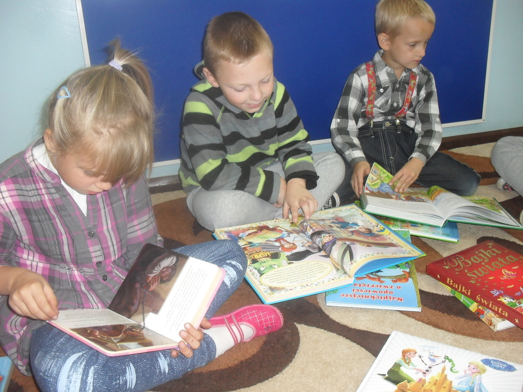 Dzień ten przypada 29 września i został ogłoszony w 2001 roku z inicjatywy Polskiej Izby Książki. W klasie 1 mamy „Kącik czytelniczy” i również czytaliśmy tego dnia. Uczniowie są na etapie poznawania literek, ale słuchanie czytanych przez wychowawcę bajek, wierszy, opowiadań, stymuluje rozwój dzieci, ich wyobraźnię, wrażliwość, wzbogaca słownictwo. Dzieci oglądały książki o różnej tematyce. Każdy znalazł w naszej kolekcji coś dla siebie, wychowawczyni przeczytała legendę o „Lechu, Czechu i Rusie”. Wszyscy słuchali w skupieniu, a kolejnym zadaniem było „wielkie gryzmolenie” na kartce, czyli dokończenie rysunku z gniazdem wedle inwencji twórczej dzieci i wysłuchanego tekstu.