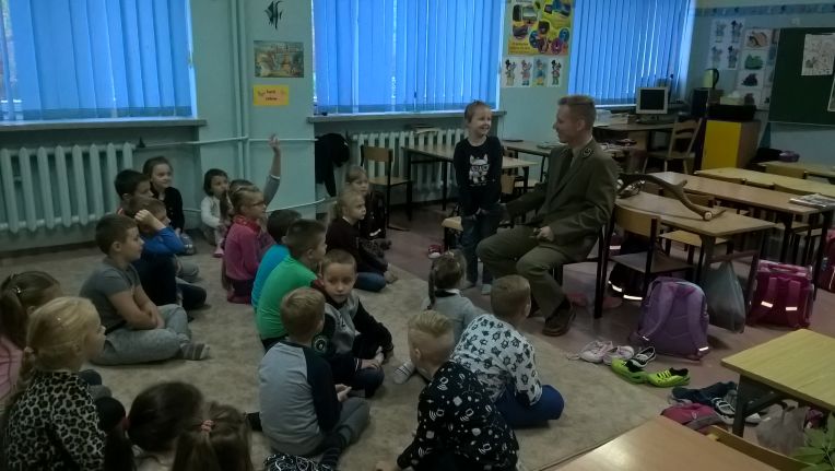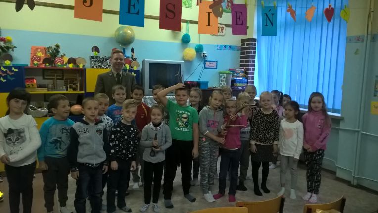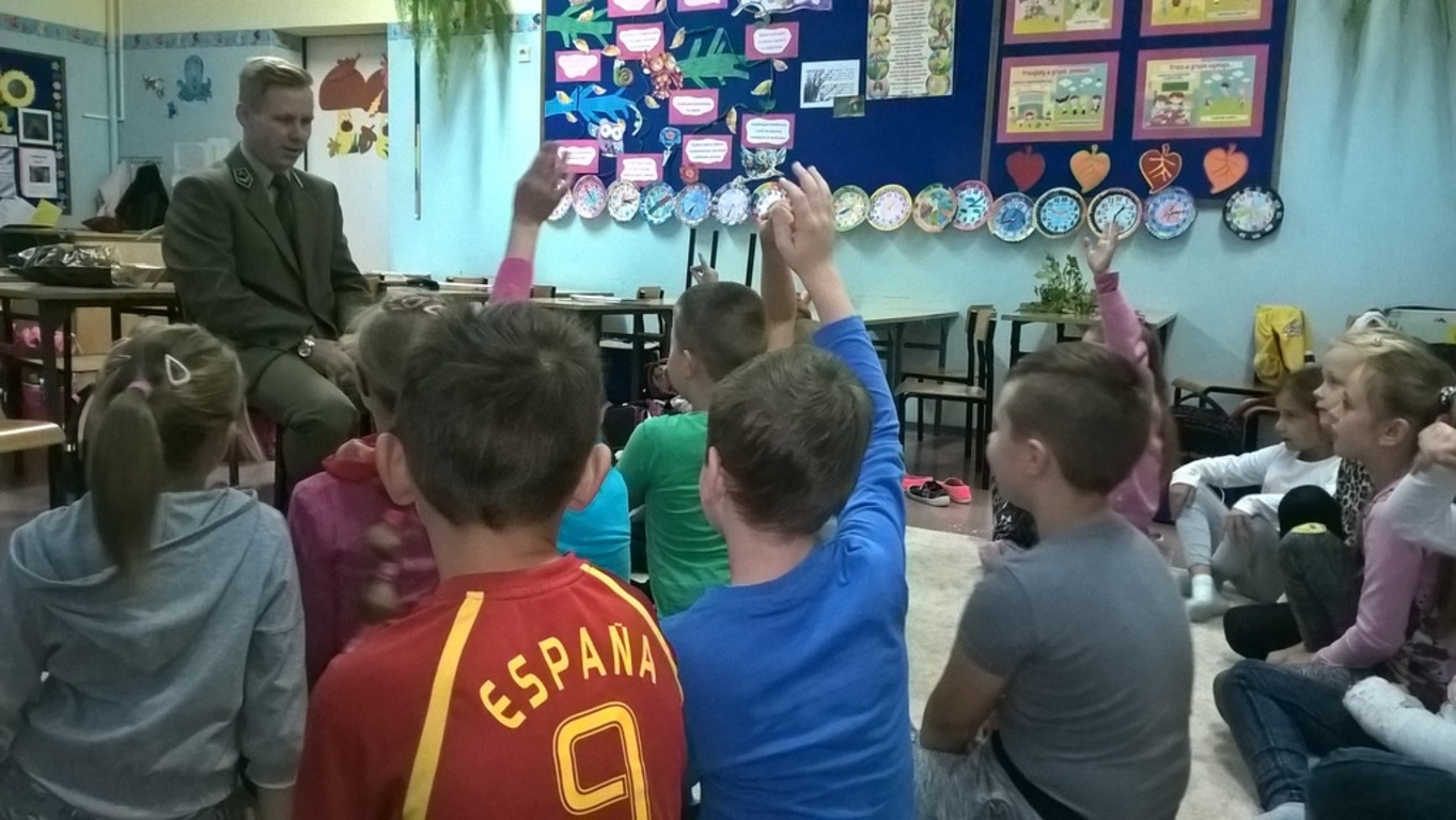 Jakie tajemnice kryje las- dowiadywali się uczniowie klasy IIa w pierwszym tygodniu października. Dzieci poznały warstwy lasu, ich roślinność i zwierzęta, nauczyły się rozpoznawać kilka gatunków drzew iglastych i liściastych, podzieliły mieszkańców drzew na sprzymierzeńców lasu i szkodniki. Ubogaceniem realizowanej tematyki był gość specjalny- Pan Waldemar Różański – leśniczy Nadleśnictwa Gostynin. Przyniesione przez naszego gościa zrzucone poroża dzikich zwierząt wzbudziły duże zainteresowanie uczniów, każdy chciał je dotknąć a niektórzy nawet przymierzyć. Zadawane przez dzieci pytania dotyczyły problemu ochrony lasu, zagrożeń ze strony człowieka, pozostawianych śmieci w lesie, dzieci pytały: jak długo rosną drzewa, jak się rozpoznaje, że drzewa chorują i co się robi , żeby je wyleczyć, oraz za co można dostać mandat w lesie? Spotkanie z kimś , kto lubi las, dba o niego, zachęciło małych rozmówców do tego , żeby czynić podobnie. Kto wie… może rosną tu następni leśnicy albo co najmniej przyjaciele i obrońcy lasów?