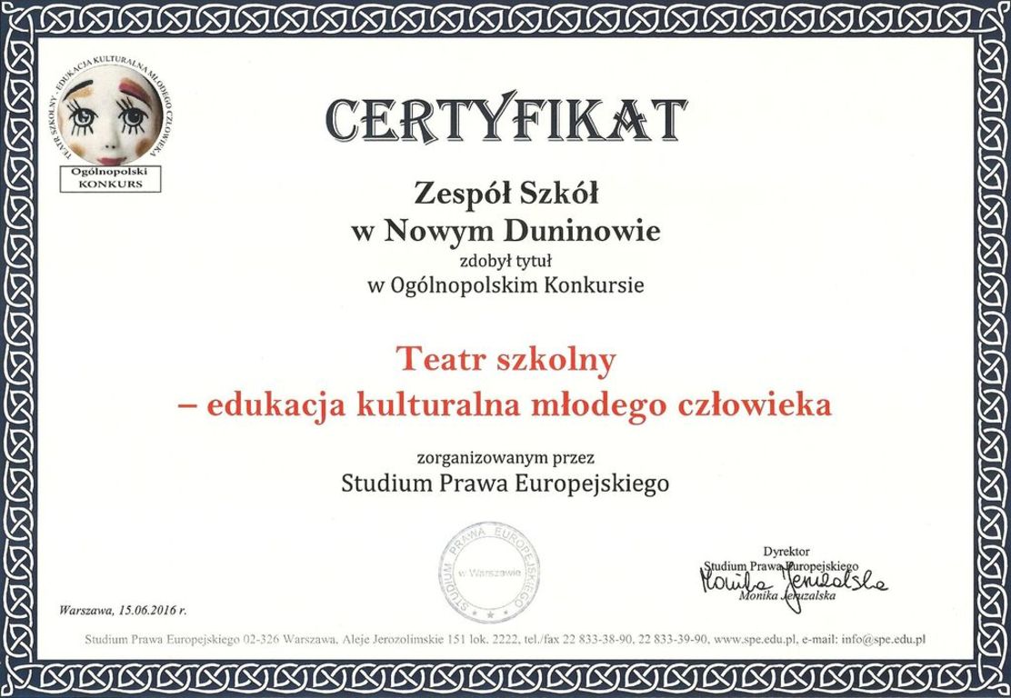 KOLEJNY CERTYFIKAT DLA NASZEJ SZKOŁY