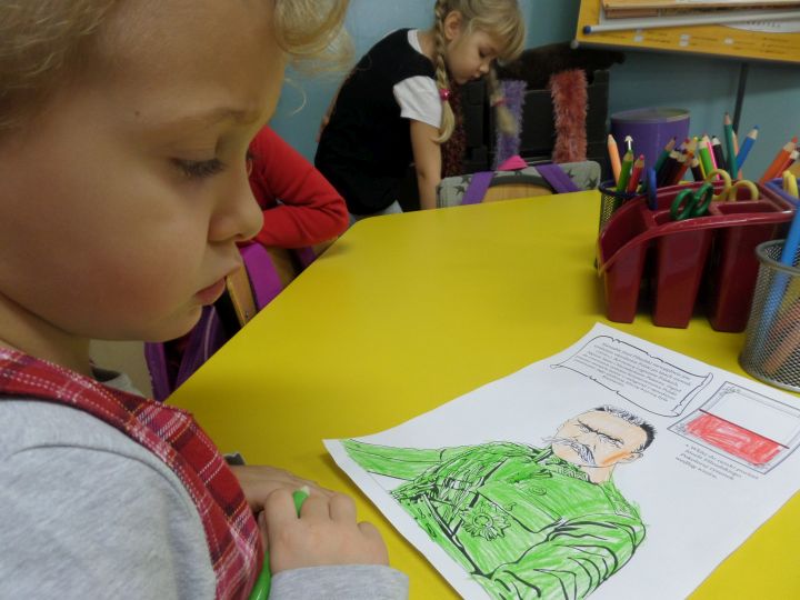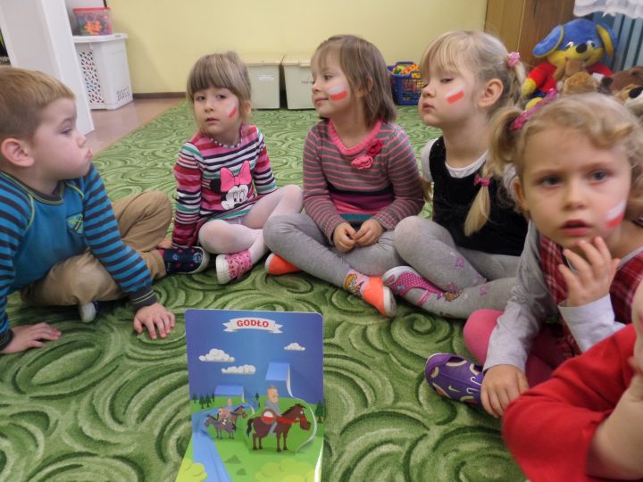 Grupa 0C uczestniczyła w akademii z okazji rocznicy odzyskania przez Polskę niepodległości. W klasie oglądaliśmy film „Polskie symbole narodowe” zrealizowany przez IPN. Układaliśmy puzzle oraz oglądaliśmy książeczkę stworzone w ramach programu „Historia w kolorach”. Recytowaliśmy wiersz o fladze i słuchaliśmy „Katechizmu polskiego dziecka”. Kolorowaliśmy portret Marszałka Józefa Piłsudzkiego a barwy narodowe towarzyszyły nam przez cały dzień namalowane na policzkach.