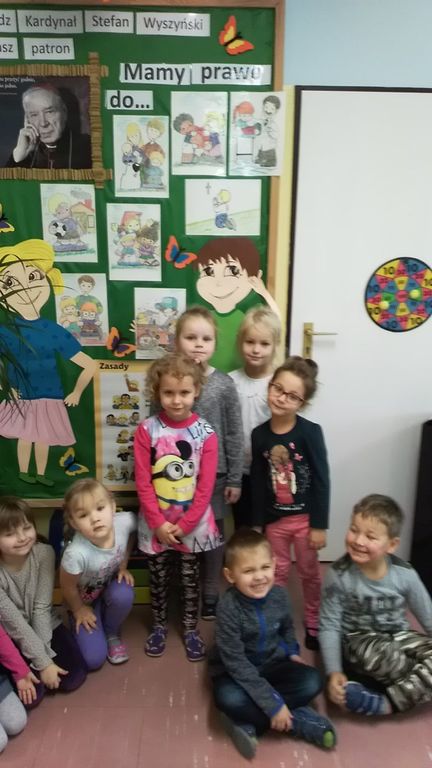 "Kiedy śmieje się dziecko smieje się cały świat" (Janusz Korczak) - pod takim hasłem obchodzono Światowy Dzień Praw Dziecka w klasach 0a, 0b, 0c. Święto to obchodzone jest w rocznicę uchwalenia Deklaracji Praw Dziecka w 1959r. oraz Konwencji o Prawach Dziecka w 1989r. Celem tego święta jest przypominanie, że każde dziecko to Mały Człowiek, posiadający swoje prawa. Przedszkolaki poznawały swoje prawa i obowiązki w trakcie wspólnych zabaw. Na koniec wyruszyły pociągiem w podróż dookoła świata. Pociąg zatrzymywał się na różnych kontynentach, a dzieci miały możliwość poznania mieszkających tam kolegów, ich wyglądu, zwyczajów i sposobu życia. Uczyły się w ten sposób bardzo ważnej cechy - tolerancji. Wszystko odbywało się w miłej, pogodnej atmosferze, było dużo uśmiechów i radości, co widać na załączonych fotografiach.