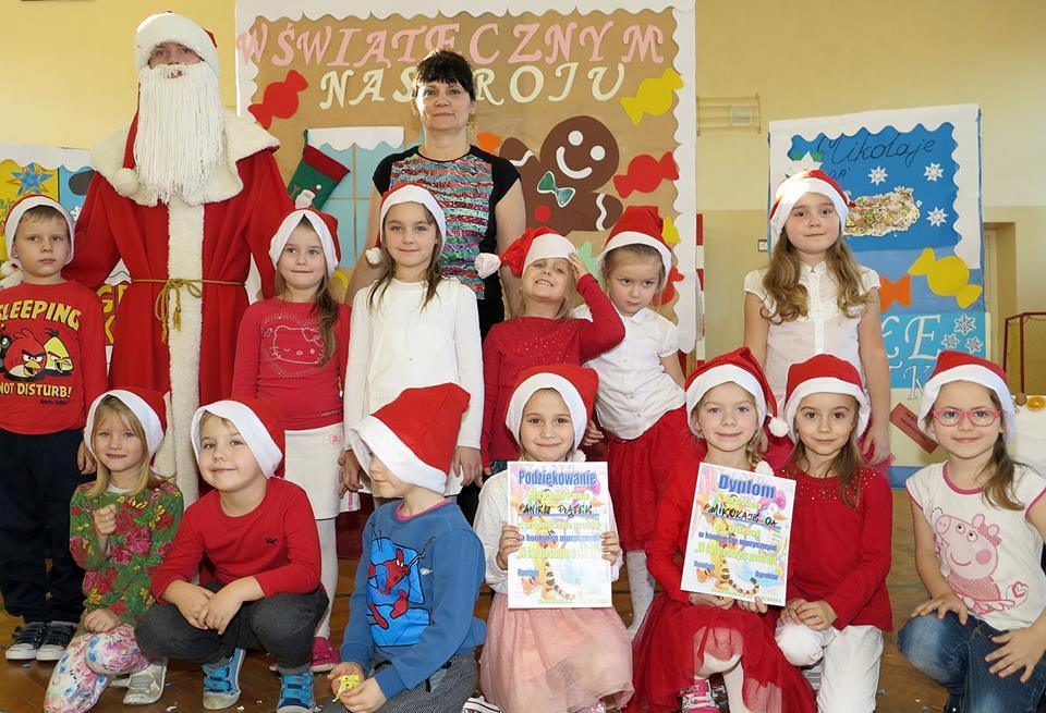 Na naszym konkursie zagościły: „Mikołaje” (kl. 0 A), „Wesołe Skrzaty” (kl. 0 B), „Słoneczka” (kl. 0 C), „Duninki” (kl. II A), „Zgraja Mikołaja” (kl. II B), „Białe Płatki”