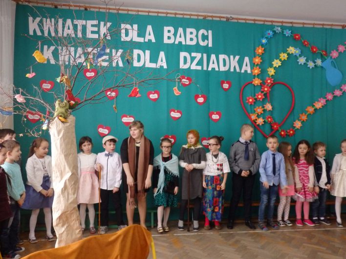 18 stycznia 2017 roku był wyjątkowym dniem w naszej szkole. Dzień Babci i Dziadka to miła okazja, aby w szczególny sposób okazać swoim bliskim szacunek oraz podziękować za miłość, cierpliwość, troskę i wyrozumiałość. Babcia i dziadek odgrywają niezwykle ważną rolę w życiu każdego dziecka. Wychowują, rozpieszczają i bezwarunkowo kochają! Dlatego też, to dzisiaj wnuki postarały się, aby dziadkowie wesoło i miło spędzili z nimi ten czas. Przed gośćmi zaprezentowali się z programem artystycznym. Były piosenki, wierszyki, humorystyczne scenki i życzenia. Wszyscy artyści mocno zaangażowali się w występ, wkładając całe swoje serduszka. Zachwyceni goście co chwila nagradzali ukochane wnuki gromkimi brawami. Na zakończenie, wszystkie dzieci zaśpiewały ukochanym Babciom i Dziadkom gromkie „100 lat…” i wręczyły prezenty. Wzruszenie ogarnęło wszystkich! Na deser był wspólny poczęstunek, pyszne ciasta upieczone przez nasze wspaniałe mamy.