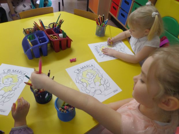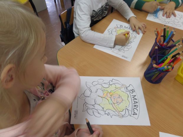 Grupa 0C obchodziła Dzień Kobiet śpiewajac piosenkę o marcu i rozmawiając o kobietach. Chłopcy składali życzenia i wręczyli dziewczynkom upominki. Później dzieci kolorowały obrazek i ozdabiały lukrem babeczki dla "Babeczek". Było wesoło i sympatycznie.