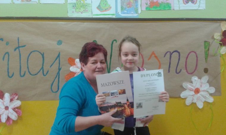 Dnia 23 marca 2017 roku w Starostwie Powiatowym w Płocku odbyło się uroczyste podsumowanie i wręczenie dyplomów oraz nagród laureatom konkursu plastycznego „Ptaki gatunków ginących”. Organizatorem VIII edycji konkursu, realizowanego w ramach programu edukacyjnego „Pozwólmy ptakom mieszkać obok nas” był Zarząd Okręgu Ligi Ochrony Przyrody w Płocku. Konkurs cieszył się dużą popularnością, dlatego jest nam niezmiernie miło poinformować, że wśród laureatów jest uczennica klasy 2 Lena Kruszewska, ktora zajęła miejsce I.Lenka dyplom i nagrodę odebrała z rąk pani wychowawczyni. Gratulujemy i życzymy dalszych sukcesów!