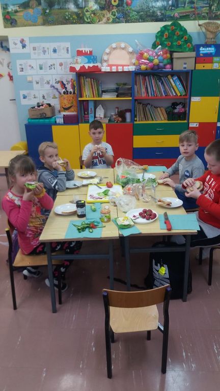 Taki posiłek jest bardzo tłusty i kaloryczny, więc pierwszoklasiści przygotowali własną zdrowszą wersję , wykorzystując poznane zwroty i słownictwo w języku angielskim.