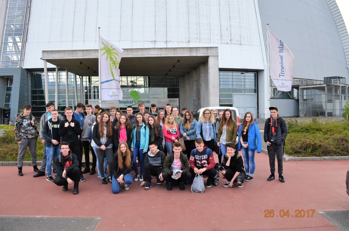 W dniu 26. 04. 2017r. wyruszyliśmy z grupą 40 uczniów Publicznego Gimnazjum w Nowym Duninowie w podróż do Niemiec. Uczniowie mogli nie tylko poznać zabytki Berlina, ale również wykorzystać swoje umiejętności językowe w praktyce. Swoją przygodę rozpoczęliśmy od pobytu w największym tropikalnym parku rozrywki w Europie Tropical Island, który znajduje się w pobliżu Berlina. W jednej z największych hal świata czekała na uczniów egzotyczna oaza z mnóstwem atrakcji tj.: baseny, zjeżdżalnie czy sauna. Szczególną atrakcją Tropical Island był największy na świecie Las Tropikalny w zamkniętym pomieszczeniu. Rośnie tu ponad 600 różnych gatunków roślin. Wioska Tropikalna składa się z oryginalnych budynków, których elementy zostały sprowadzone między innymi z Bali czy Tajlandii.