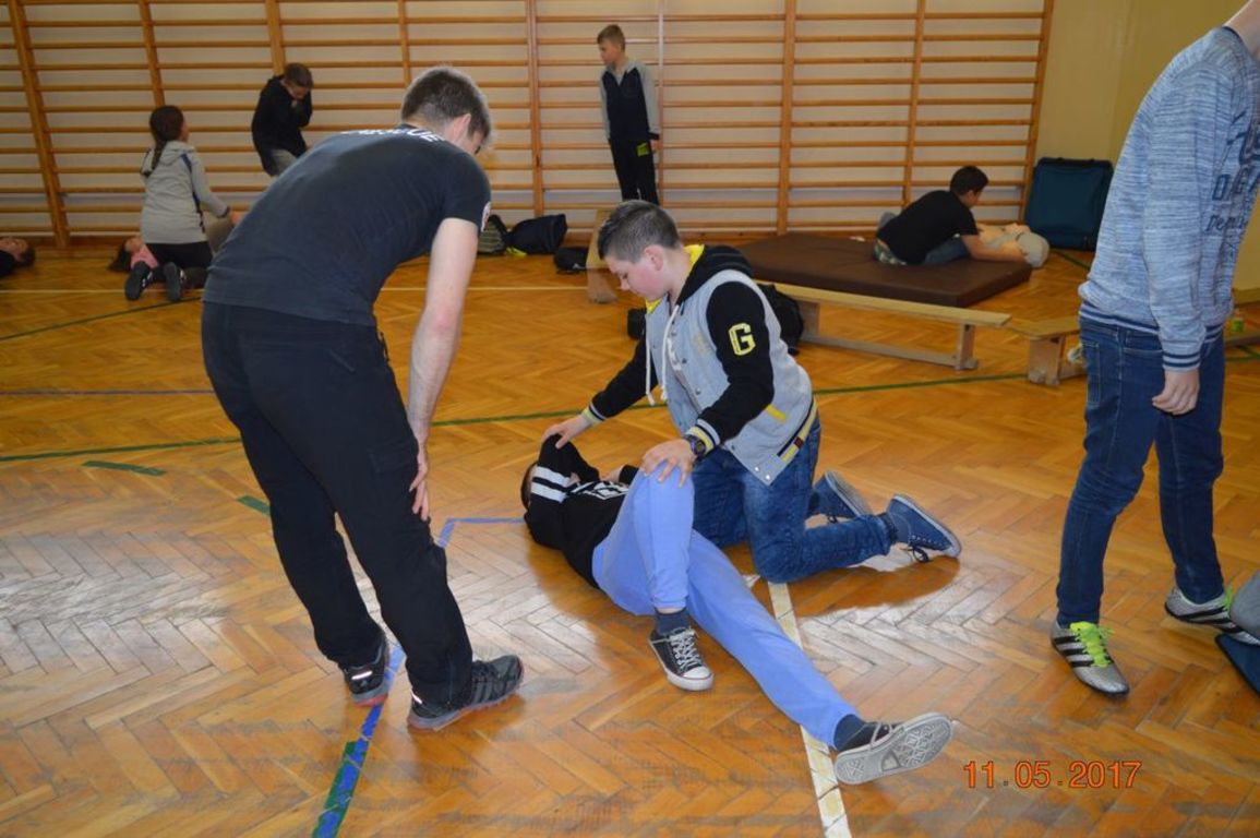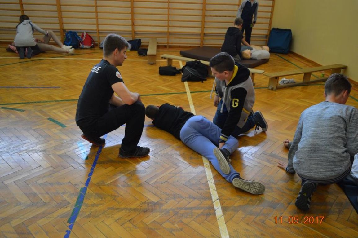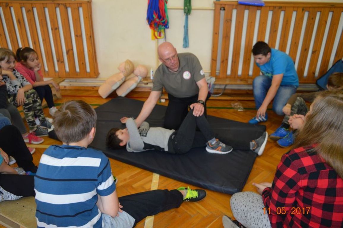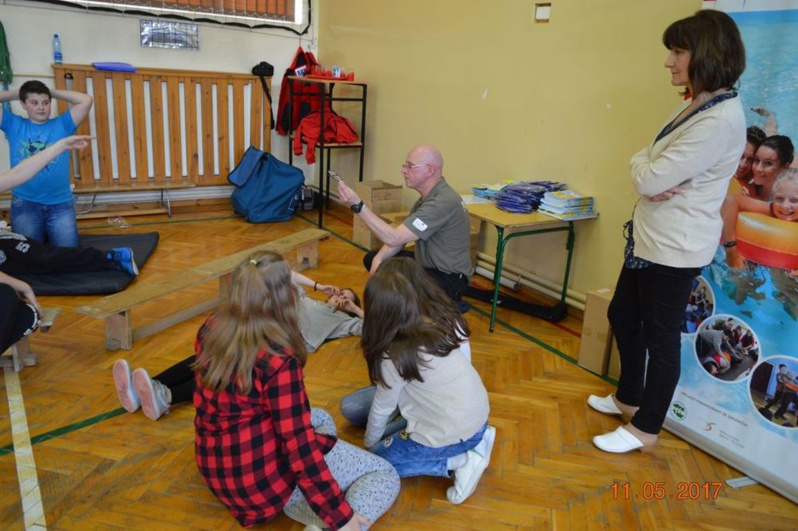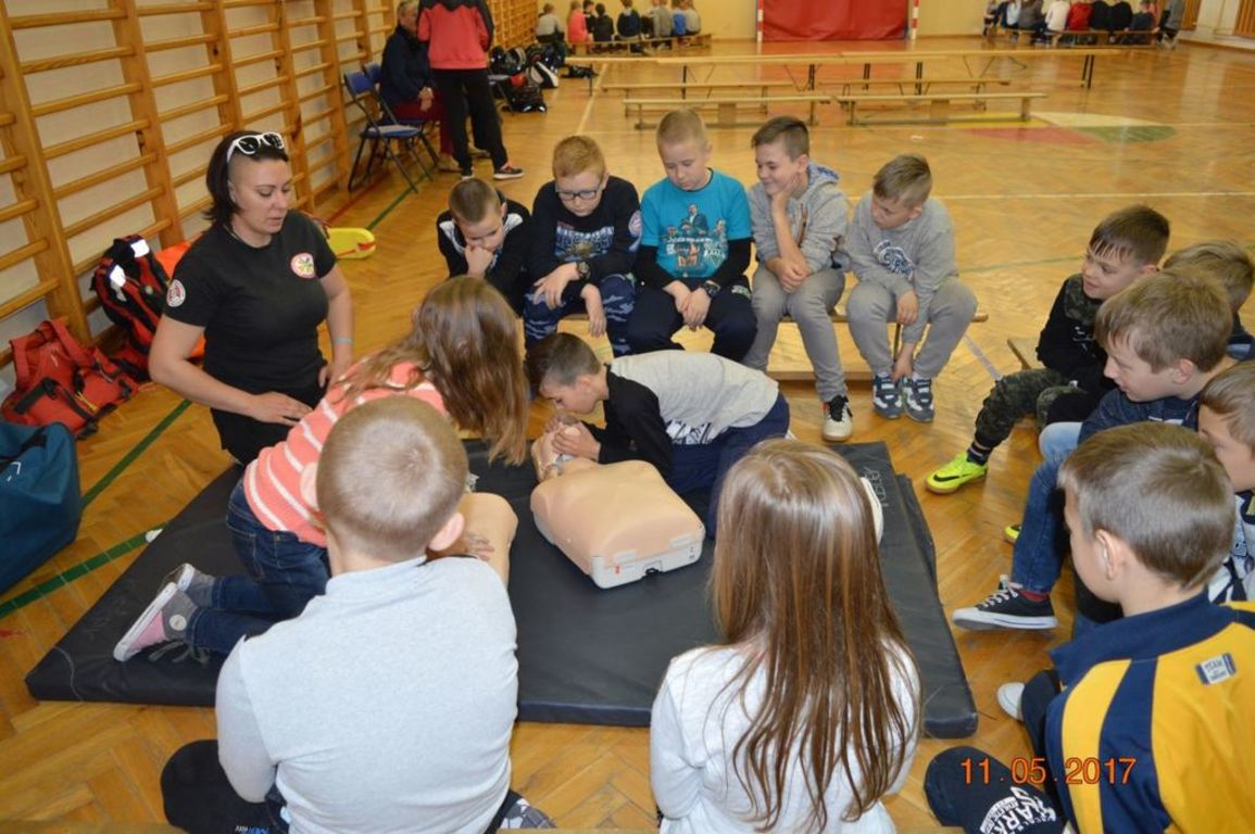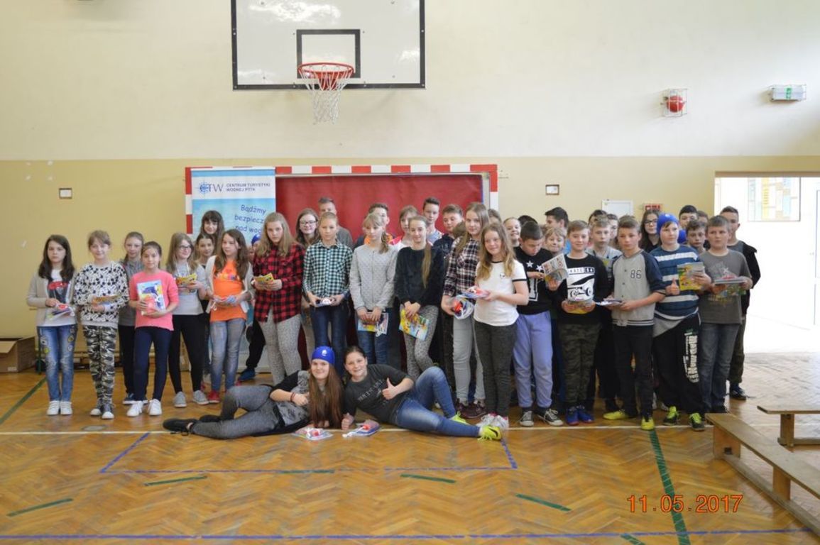11. 05. 2017r. przedstawiciele Centrum Turystyki Wodnej PTTK, w ramach projektu pn. "Woda, dziecko, bezpieczeństwo, akcja informacyjno - edukacyjna" przeprowadzili w naszej szkole dla uczniów klas III - VI szkolenie teoretyczno - praktyczne z zakresu nauki udzielania pierwszej pomocy przedmedycznej. W ramach spotkania odbyły się zajęcia teoretyczne i praktyczne, w trakcie których zawodowi instruktorzy i ratownicy medyczni uczyli dzieci i młodzież właściwego zachowania się w przypadku zagrożenia nad wodą i w wodzie oraz przeprowadzili ćwiczenia z resuscytacji krążeniowo - oddechowej z wykorzystaniem manekinów. Każde dziecko uczestniczące w zajęciach miało okazję na samodzielne wykonywanie ćwiczeń z zakresu udzielania pierwszej pomocy. Uczniowie otrzymali również materiały szkoleniowe i certyfikaty ukończenia szkolenia.