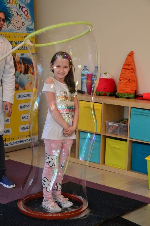 Przedszkolaki i uczniowie klasy II i III w dniu 26 maja 2017 r. pojechali do „Zakątka Odkrywców” w Stróżewku koło Płocka. Dzieci uczestniczyły w warsztatach mydlanych prowadzonych przez „Szalonego Naukowca”. Podczas zajęć uczniowie poznali historię mydła oraz jego rodzaje. Samodzielnie wykonali mydełka glicerynowe i ozdobili je według własnego pomysłu. Nasi młodzi odkrywcy obejrzeli niezwykły pokaz baniek mydlanych. Były bańki małe i duże, bańki z mgłą i wybuchające. Każdy z uczestników warsztatów był zamknięty na chwilę w ogromnej bańce mydlanej. Dzieci uczestniczyły również w zabawach ruchowych przy muzyce. Pobyt w „Zakątku Odkrywców” dostarczył dzieciom dużo radości i niezapomnianych wrażeń.