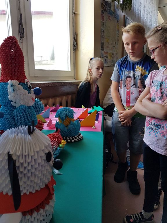 Gimnazjaliści z klasy IIIAB na zajęciach z techniki w ostatnim okresie nauki pracowali metodą projektu. Wykonywali przeróżne prace, które zostały wyeksponowane na wystawie szkolnej. Na szczególną uwagę zasłużyły dzieła Kingi Sławińskiej, uczennicy kl. IIIB, która od lat interesuje się techniką origami modułowe i z wielką pasją wykonuje ciekawe prace. Zapraszamy do galerii zdjęć - nasza młodzież potrafi jednak zorganizowac sobie swój czas wolny.