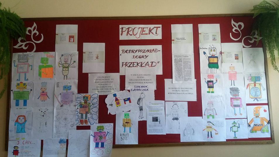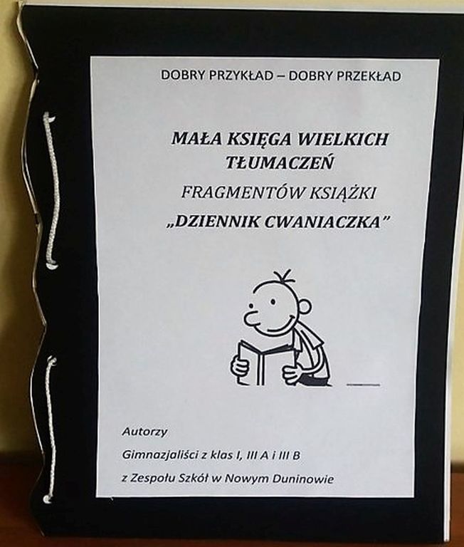 Literacko – kulturalna podróż dookoła świata z Charliem i Gruffalo to projekt czytelniczy "Dobry przykład – dobry przekład” przygotowany przez MSCDN w Płocku i Bibliotekę Pedagogiczną. Do projektu zgłosiło się 80 nauczycieli, 30 szkół z rejonu działania płockiej delegatury MSCDN. Zamierzeniem pomysłodawców programu było stworzenie nauczycielom okazji do korelacji międzyprzedmiotowej, pracy projektowej i kreatywnych działań na rzecz popularyzacji czytelnictwa. Cel projektu to także popularyzowanie niemiecko - i anglojęzycznej literatury dziecięcej i młodzieżowej. 8 czerwca 2017r. odbyło się podsumowanie projektu. Podczas konferencji 5 wyróżnionych szkół prezentowało efekty swojej pracy – w tym również Zespół Szkół z Nowego Duninowa. Nauczyciele realizujący projekt składają ogromne podziękowania uczniom zaangażowanym w różnorodne zadania, które były realizowane na trenie placówki od marca do maja 2017r.