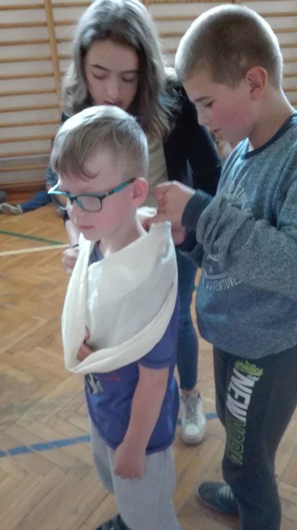 7 czerwca 2017 roku uczniowie ze Szkoły Filialnej w Soczewce udali się do Zespołu Szkół w Nowym Duninowie na bardzo ważne zajęcia z udzielania pierwszej pomocy w różnych sytuacjach, przygotowane przez uczniów klasy II gimnazjum pod opieką p. E. Ruszkowskiej. „Młodzi Ratownicy” (gimnazjaliści) w bardzo przystępny sposób przekazali zasady udzielania pierwszej pomocy uczniom z oddziałów przedszkolnych i klas I – III. Dzieci same mogły przećwiczyć prawidłowe zasady udzielania pierwszej pomocy. Z przejęciem i dużym zaangażowaniem samodzielnie robiły opatrunki, przenosiły rannych na kocu, uciskały serce czy robiły sztuczne oddychanie. Patrząc na aktywność dzieci wierzymy, że zapamiętają te bardzo ważne zajęcia.