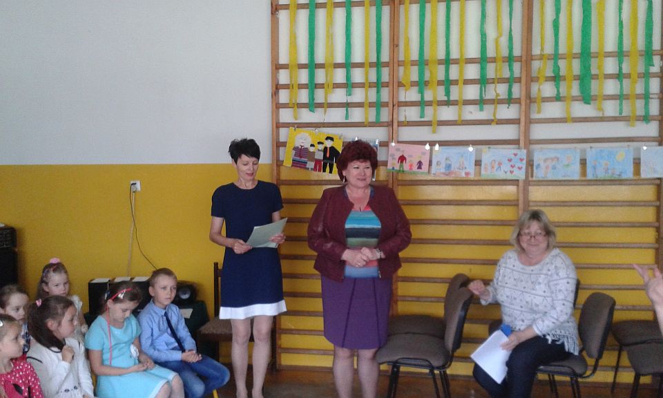 Po zabawach nastąpiło rozdanie dyplomów i nagród dzieciom biorącym udział w konkursie plastycznym „Moja rodzina – mój dom” zorganizowanym przez p. Renatę Podkańską oraz konkursie plastycznym „Przyroda – Twój Przyjaciel” zorganizowanym przez LOP w Płocku (opiekunką dzieci była p. Danuta Buczyńska).