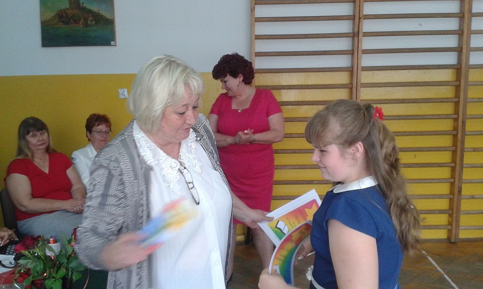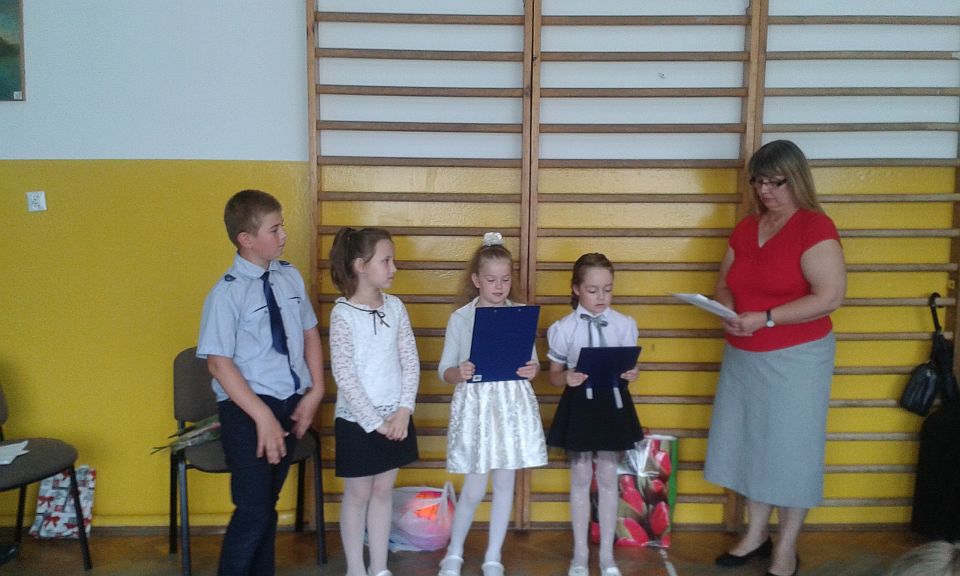Oczywiście najważniejszym punktem było rozdanie upragnionych świadectw, dyplomów, nagród oraz podziękowań dla rodziców. Po tej miłej części pożegnaliśmy się z klasą III, która w części artystycznej wspominała chwile spędzone w szkole. Wychowawczyni klasy III, pani Renata Podkańska nie kryła wzruszenia spowodowanego rozstaniem ze swoimi uczniami.