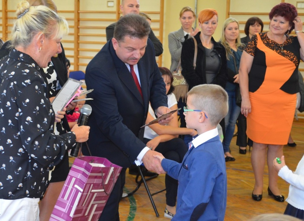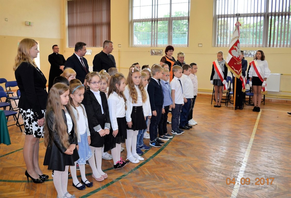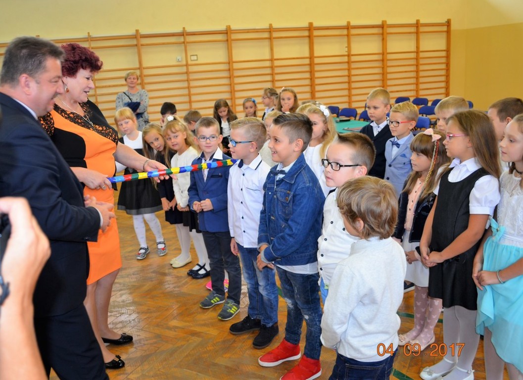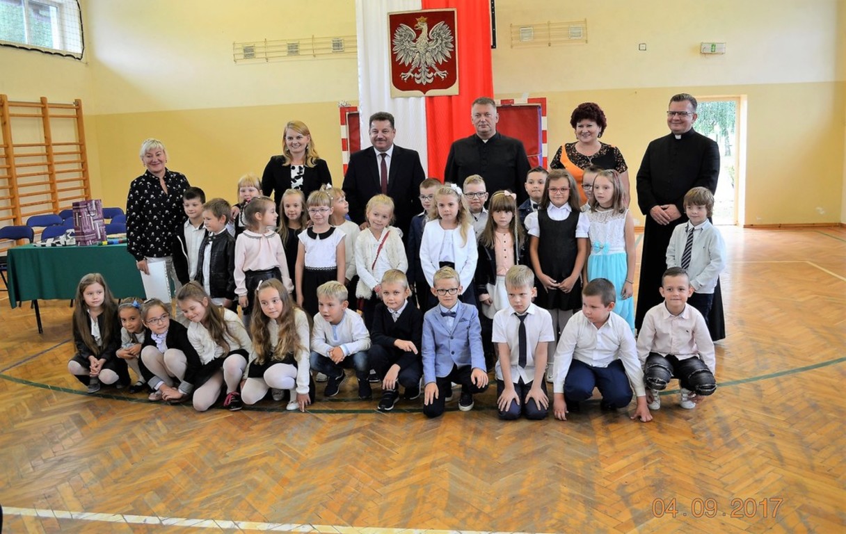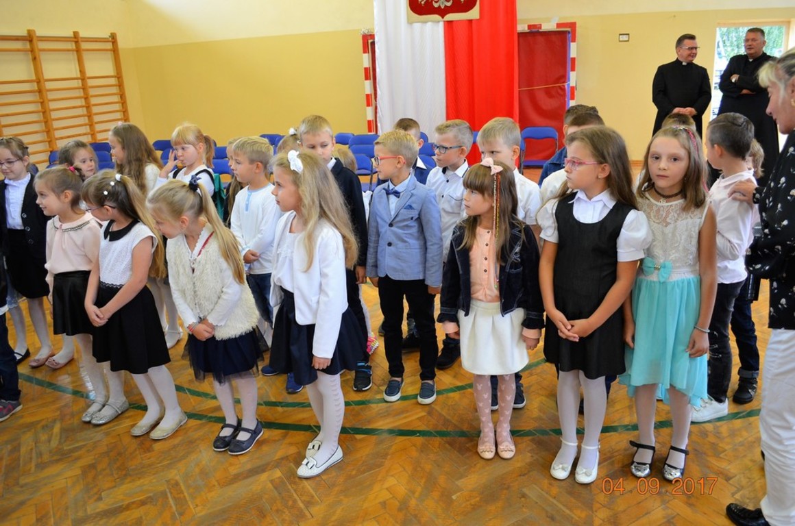 4 września rozpoczął się rok szkolny 2017/2018. Tego dnia 29 dzieci złożyło uroczyste ślubowanie i zostało pasowanych na uczniów klasy I. Uczniowie złożyli przyrzeczenie „(…) być dobrym Polakiem, dbać o dobre imię swojej klasy i szkoły(…)”. W tym szczególnym dniu towarzyszył nam pan wójt Mirosław Krysiak, który wręczał drobne upominki i znaczące dla dzieci dyplomy pasowania na ucznia.