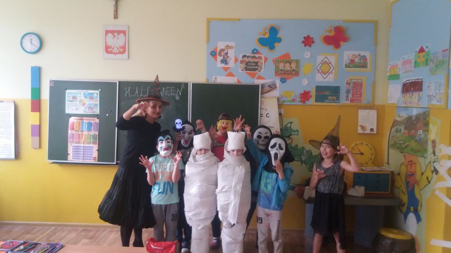 Halloween w naszej szkole odbywa się w ramach zajęć kulturowych z języka angielskiego. Jest to czas spędzony na zabawach i grach dla uczniów, które mają na celu przybliżenie tradycji krajów anglojęzycznych. Uczniowie bardzo chętnie przebierają się w symboliczne stroje święta Halloween (dynie, zmory, duchy i potwory), bawiąc się i ciesząc podczas lekcji.