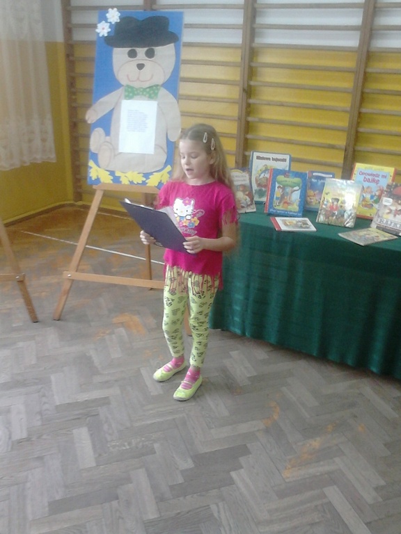 Nie zabrakło prezentacji ciekawych książek z „Misiowej biblioteczki”, których bohaterami są sympatyczne misie; prowadząca spotkanie Danuta Buczyńska przeczytała dzieciom bajeczkę „Złotowłosa i trzy niedźwiadki”.