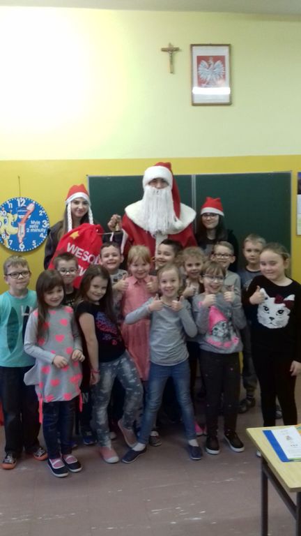 6 grudnia przybył do naszej klasy Święty Mikołaj. Wszyscy uczniowie byli bardzo zaskoczeni wizytą tak wspaniałego gościa. Mikołaj obdarował każdego ucznia prezentem i ciepłym uśmiechem. Dzieci były bardzo szczęśliwe, gdyż każdy miał okazję przyjrzeć się Mikołajowi z bliska, usiąść mu na kolanach i chwilkę porozmawiać. Na koniec w ramach podziękowań dzieci zaśpiewały Mikołajowi piosenkę.