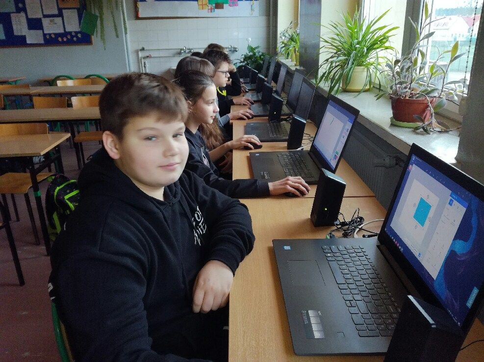 W ramach dofinansowania otrzymaliśmy również nowoczesny sprzęt komputerowy do pracowni komputerowej: laptopy i tablicę interaktywną oraz doposażono pracownię przyrodniczą i matematyczną w pomoce dydaktyczne.