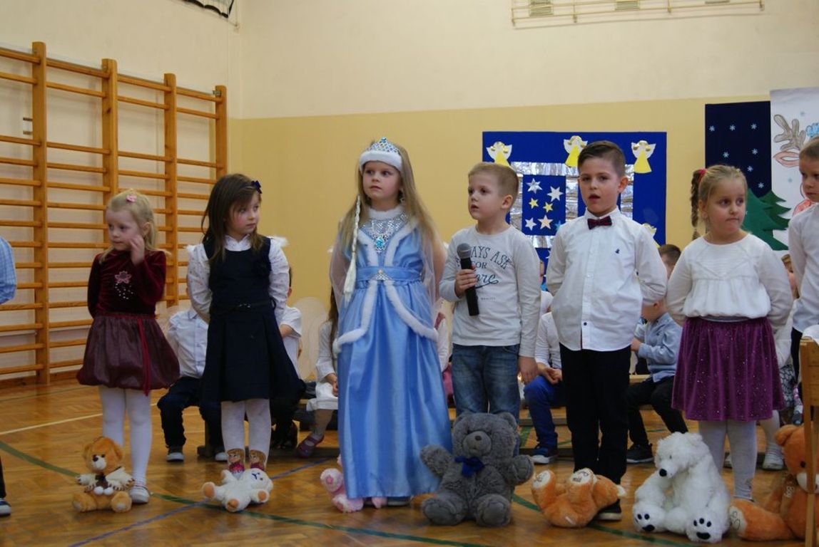 O godz. 10.00 wszystkie grupy 0 zebrały się na sali gimnastycznej, aby powitać św.Mikołaja, który przybył z wielkim workiem pełnym prezentów. Było przedstawienie o świętach, aniołach, choinkach, gwiazdkach, wspólne śpiewanie kolęd. Ciekawym urozmaiceniem był taniec z misiami w wykonaniu grupy 0c. Przedszkolaki swoimi występami podbiły serca zgromadzonych gości, a św. Mikołaj podarował wszystkim dzieciom piękne prezenty.