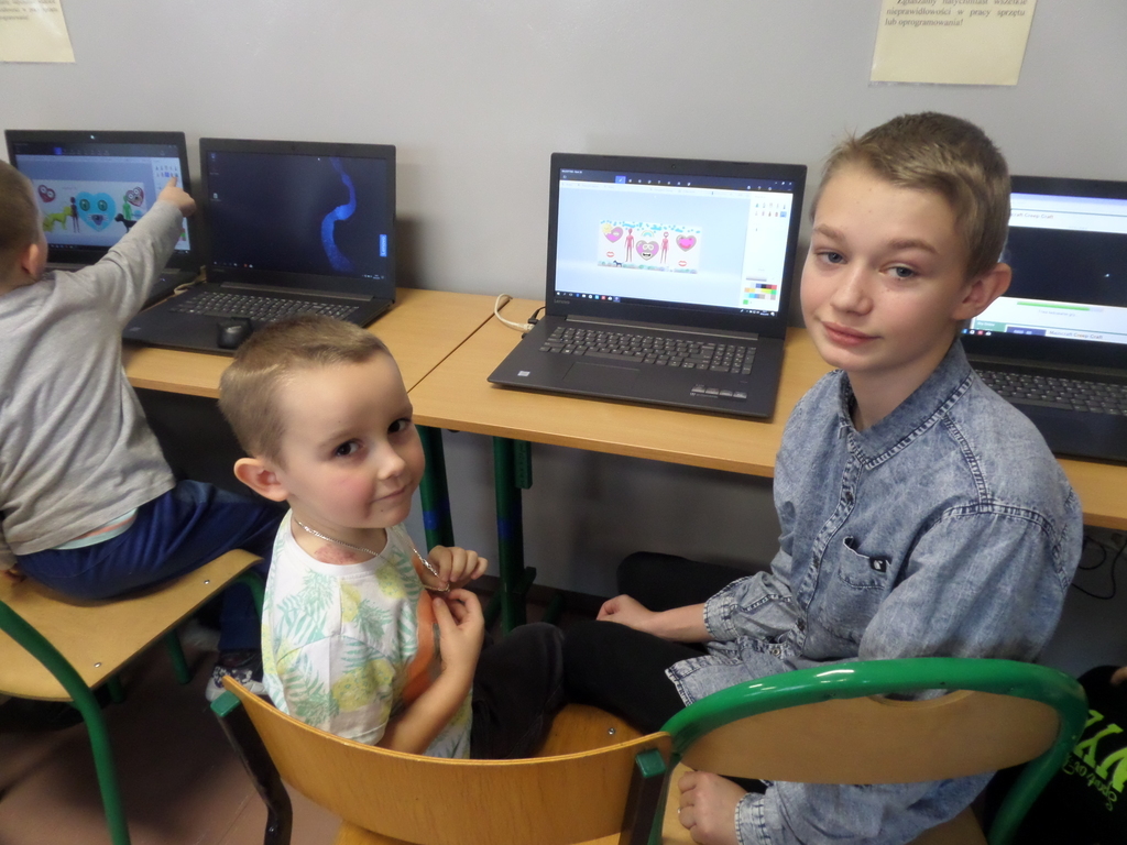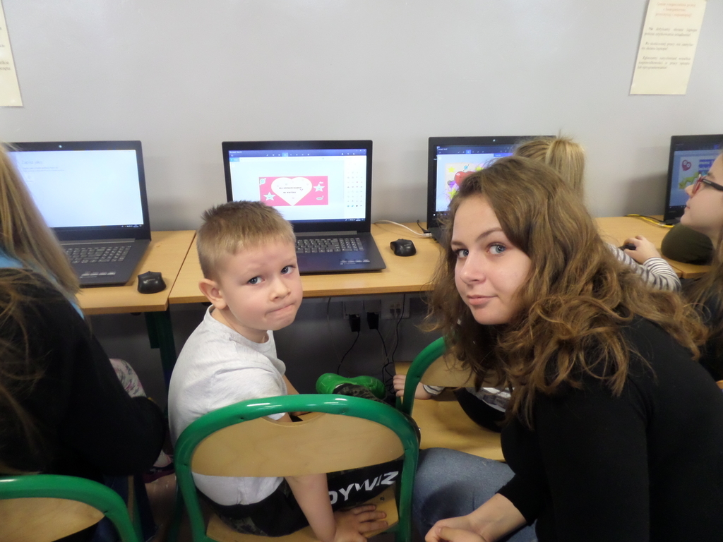 9 lutego 2018 z okazji Dnia Bezpiecznego Internetu odbyły się zajęcia integracyjne dla przedszkolaków z kl. 0C i uczniów kl. VIIA. Zajęcia zostały poprowadzone przez p. Kasię Sieradzką i p. Olę Białkowską. Współne spotkanie małych dzieci i młodzieży miało niecodzienny charakter. Starsi uczniowie wprodwadzali maluchów w świat komputerów. Dzieci mogły dowiedzieć się, jak bezpiecznie korzystać z Internetu i zabaw przy komputerze. Wspólnie wykonali śliczne kartki walentynkowe.