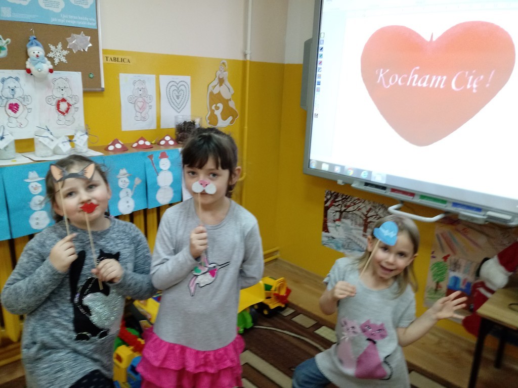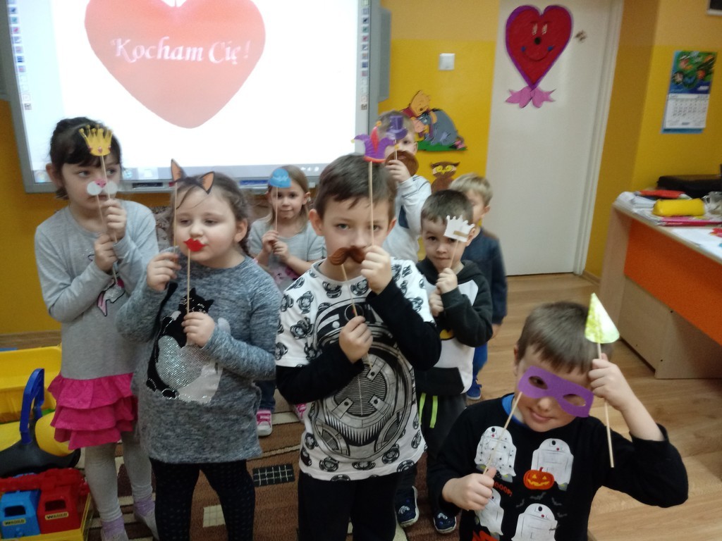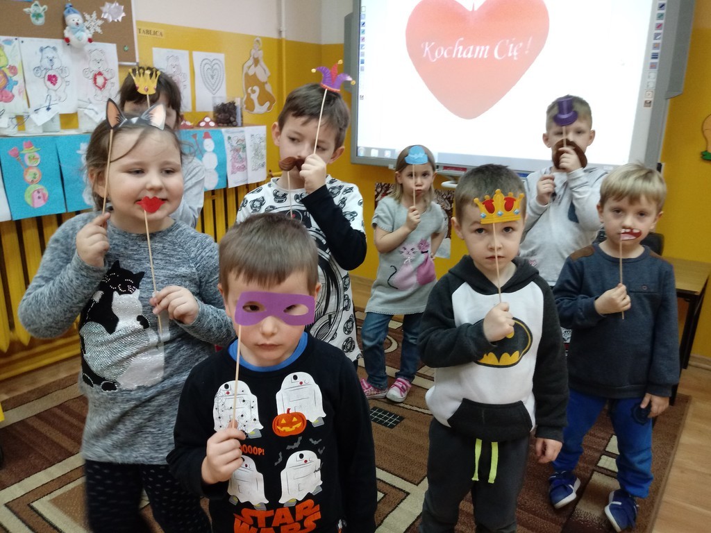 W dniu 12. 02. 2018r. przedszkolaki z Soczewki poczuły aurę walentynkową. Natchnione przemijającym karnawałem, postanowiły przeistaczać się w nietuzinkowe osobowości. A to wszystko za sprawą fotobudki i atrybutów przypominających papierowe maski. Dzieci zmieniały się w bohaterów za pomocą m. in. kapeluszy, czerwonych ust, eleganckich much, czy cylindrów i koron. Przy tym zabawa była wyśmienita, a humory dopisywały bezgranicznie. Po sesji zdjęciowej przedszkolaki otrzymały prezenty. Były to zmotoryzowane, świecące breloczki lub magiczne, migoczące kule.