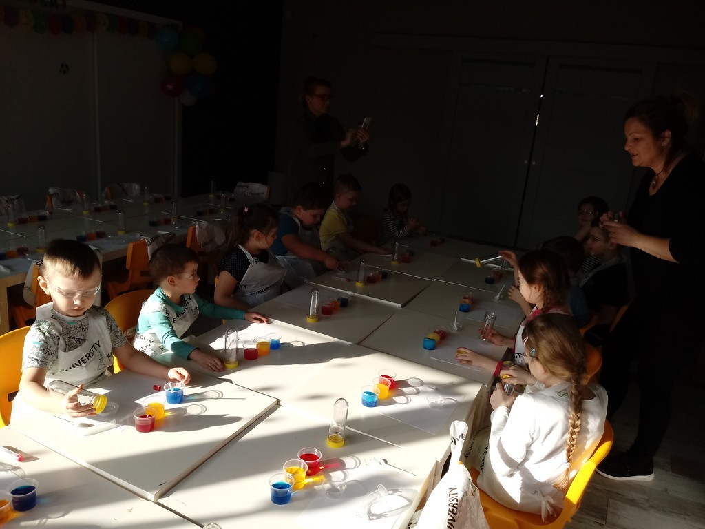 Dnia 20 lutego 2018 roku uczniowie kl. 0 - III Szkoły Filialnej w Soczewce wybrali się do centrum zabaw „Cud Miód” w Płocku. Program wizyty był bardzo atrakcyjny. Dzieci uczestniczyły w zabawach ruchowych i warsztatach „Tęcza”. Określały kolorystykę mieszania barw i ich nazewnictwa. Uczniowie wykonali indywidualnie „tęczową galaretkę” umieszczoną w dużych probówkach, którą zabrali do domu. Można było obserwować w nich zmieniające się kolory. Uczestnicy korzystali także z barku, gdzie można było zakupić ciepłe przekąski, jak i spróbować waty cukrowej. Dzieci miały również możliwość uczestniczenia w zabawach motorycznych na podłodze interaktywnej.