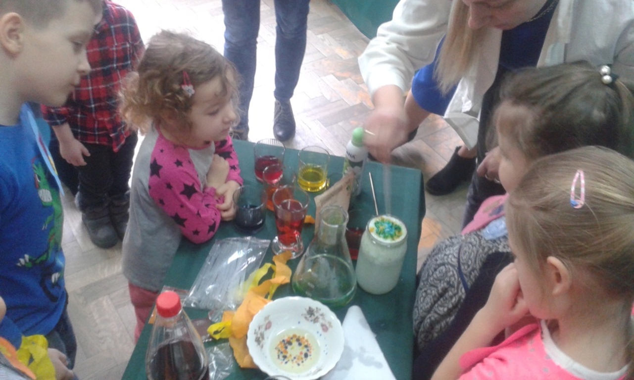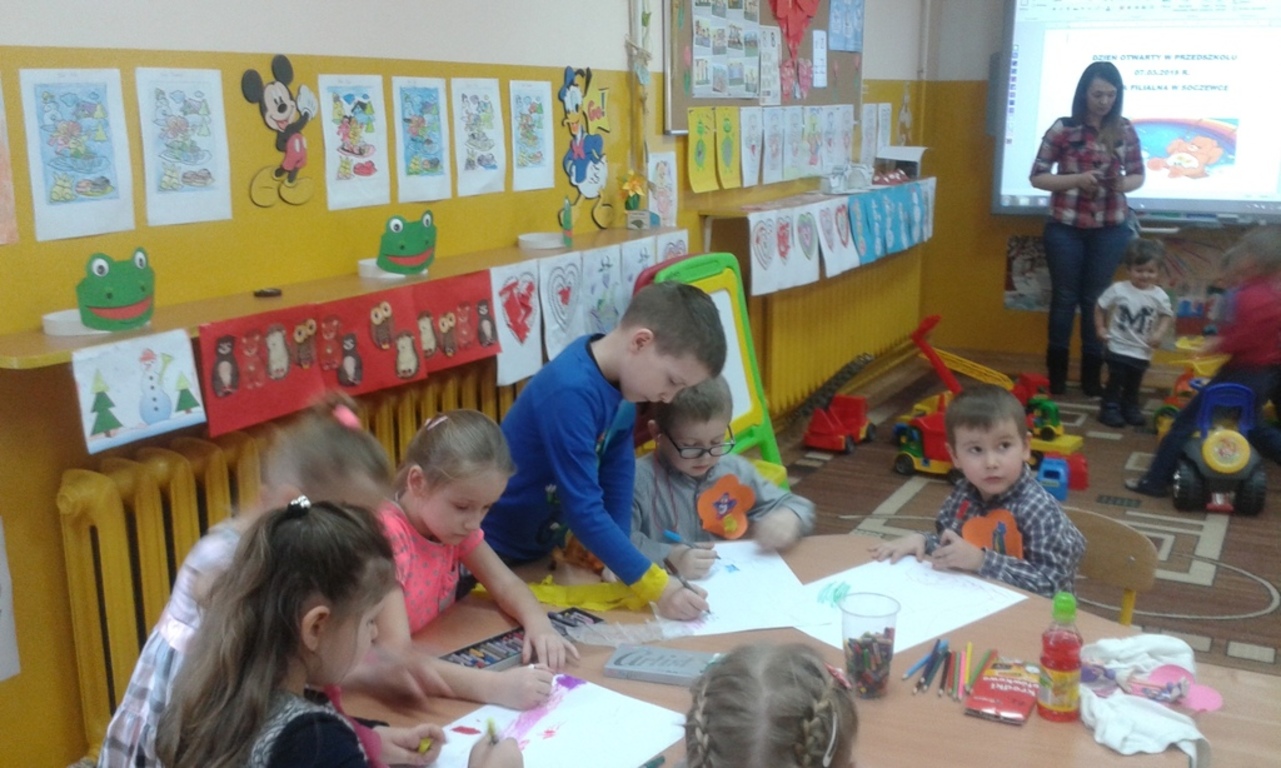Dzień otwarty w oddziale przedszkolnym przy Szkole Filialnej w Soczewce, odbył się 7 marca 2018r. Przedszkolaki śpiewały piosenki oraz uroczo zachęcały przybyłych gości do wspólnej nauki i zabawy. Pojawiła się także pani „Booom – Wooow!”, która prezentowała eksperymenty badawcze. Dzięki nim wszyscy uczestnicy mogli zaobserwować „tęczę w szklankach”. Ujrzeliśmy ją m.in. za pomocą ciepłej wody, kolorowych barwników spożywczych oraz cukru. Dzieci zaciekawiły również „skaczące koniki polne”, do których wykorzystaliśmy oranżadę i rodzynki. Można było zaobserwować też „magię w słoiku” , a to wszystko głównie za pomocą oleju kuchennego. W dalszej części dzieci uczestniczyły w zabawach dydaktyczno – ruchowych, manualnych i przyrodniczych, określając zwiastuny wiosny. Wszyscy otrzymali wizytówki oraz słodkie upominki. W zajęciach brała udział Pani Dyrektor.