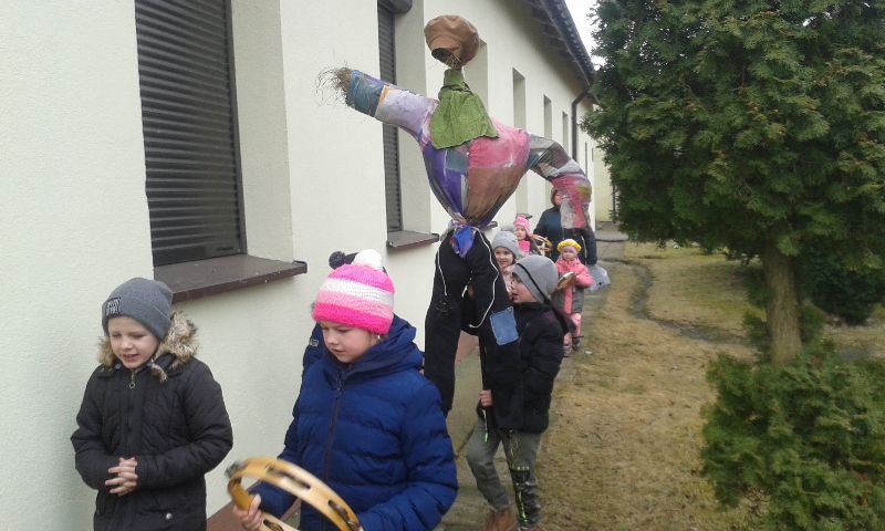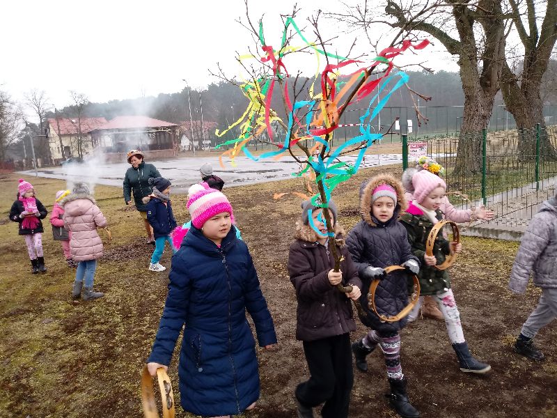 Wiosna to czas, w którym przyroda budzi się po zimowym śnie do życia, budzą się zwierzęta, rośliny. 21 marca rozpoczyna się kalendarzowa wiosna i pomimo niesprzyjającej aury za oknem staraliśmy się ją obudzić dwa dni później. Z hałaśnikami w dłoniach i kukłą Marzanny udaliśmy się na teren szkolny, by definitywnie pożegnać zimę i wrócić z pięknie przystrojonym gaiczkiem.