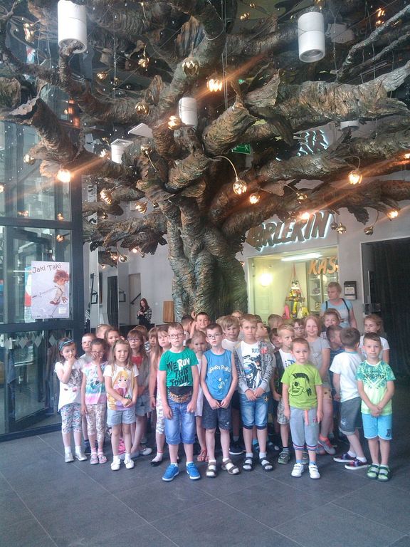 29 maja grupy 0a, 0b, 0c,klasa Ib i II wyruszyły na wycieczkę do Łodzi. Pogoda dopisała. Pierwszym celem wycieczki było łodzkie planetarium, w którym dzieci obejrzały film pt: "Kosmos dla najmłodszych". Następnie udaliśmy się do Teatru Arlekin, na przedstawienie pt: "Złota Rybka". Po spektaklu udaliśmy się do Jupi Parku, w którym dzieciaki bawiły sie w basenach kulkowych, zjeżdżały na zjeżdżalniach, skakały na trampolinach. Po tak dużej dawce ruchu odpoczynek znaleźliśmy w Palmiarni, spacerując i obserwując egzotyczne rosliny.