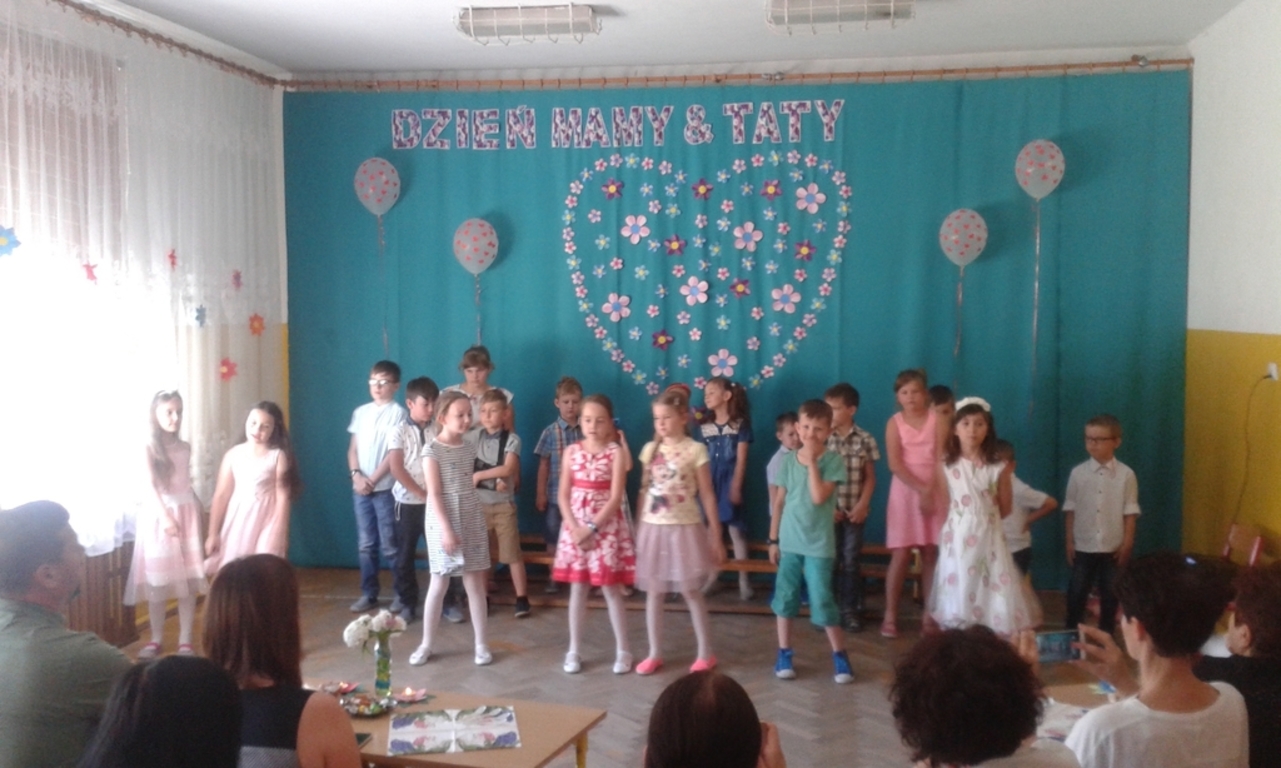 Nasi goście licznie przybyli do szkolnej kawiarni „Słodkości dla miłych gości”, aby podziwiać występy swoich dzieci, które recytowały wiersze, śpiewały piosenki, a niejednemu rodzicowi ze wzruszenia zakręciła się łezka w oku. Z wielka dumą patrzyli na swoje pociechy. Mali artyści z wielkim przejęciem odtwarzali swoje role. Zaprezentowali również swój talent taneczny w dwóch utworach.