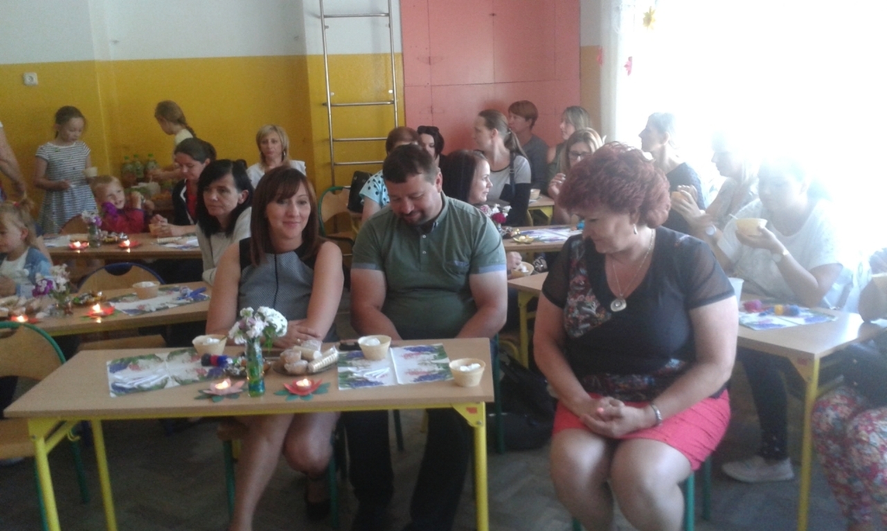 Ogromną przyjemność sprawiły rodzicom własnoręcznie wykonane drobne upominki. Mamy otrzymały breloczki do kluczy zrobione z pomponów, a tatusiowie w formie krawatów. W czasie pobytu rodziców w „kawiarni” mogli oni kosztować przygotowany poczęstunek.