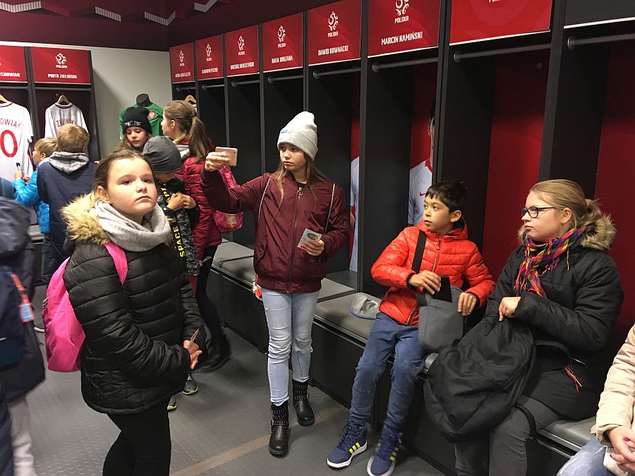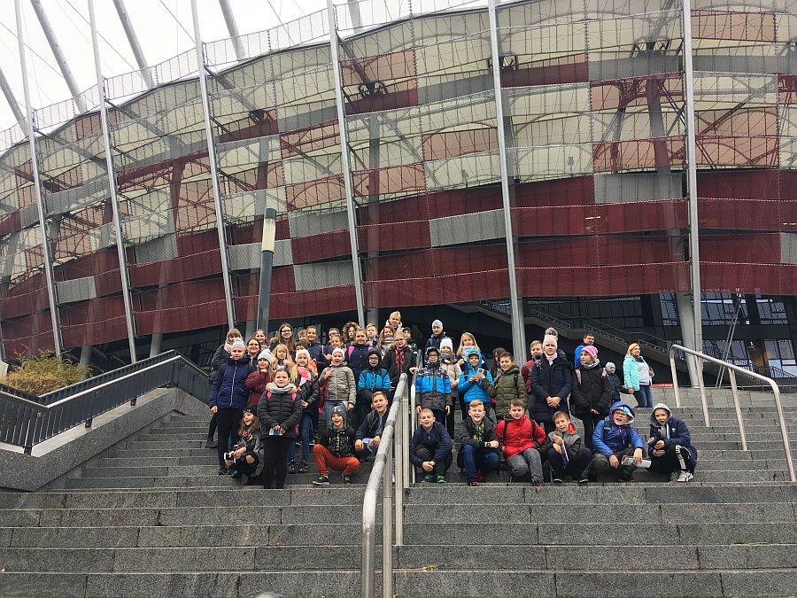 Po dotarciu do stolicy, spotkaliśmy się z przewodnikiem, który przedstawił nam plan pobytu w Warszawie. Pierwszym punktem było zwiedzanie Stadionu Narodowego. Pod opieką pana przewodnika obejrzeliśmy strefę piłkarza. Wrażenie było niesamowite. Uczestnicy wycieczki byli zachwyceni obiektem.