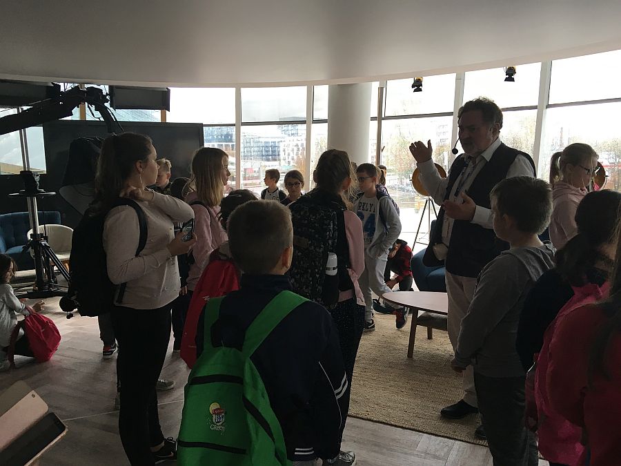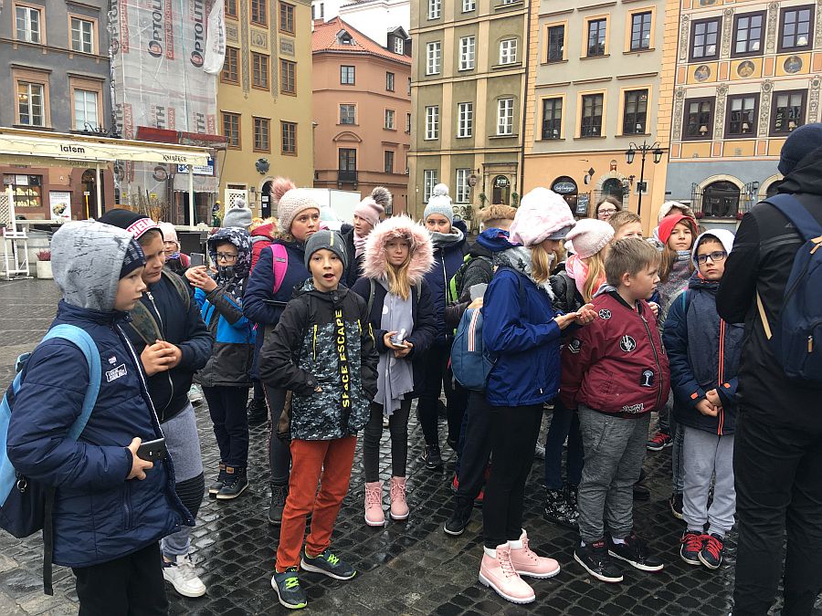 Kolejnym punktem był spacer uliczkami Starego Miasta. Przewodnik zaprezentował nam między innymi historię Zamku Królewskiego oraz Pomnika Młodego Powstańca. Przed wyjazdem udaliśmy się na zajęcia edukacyjne do gmachu Telewizji Polskiej.