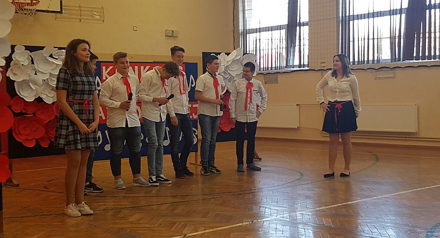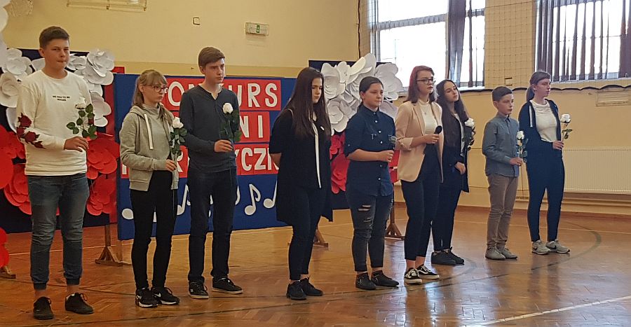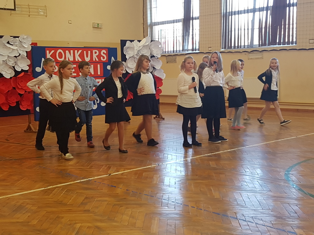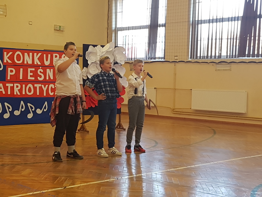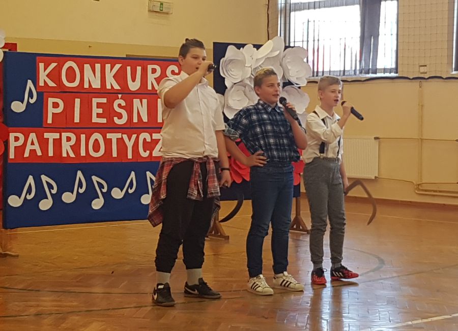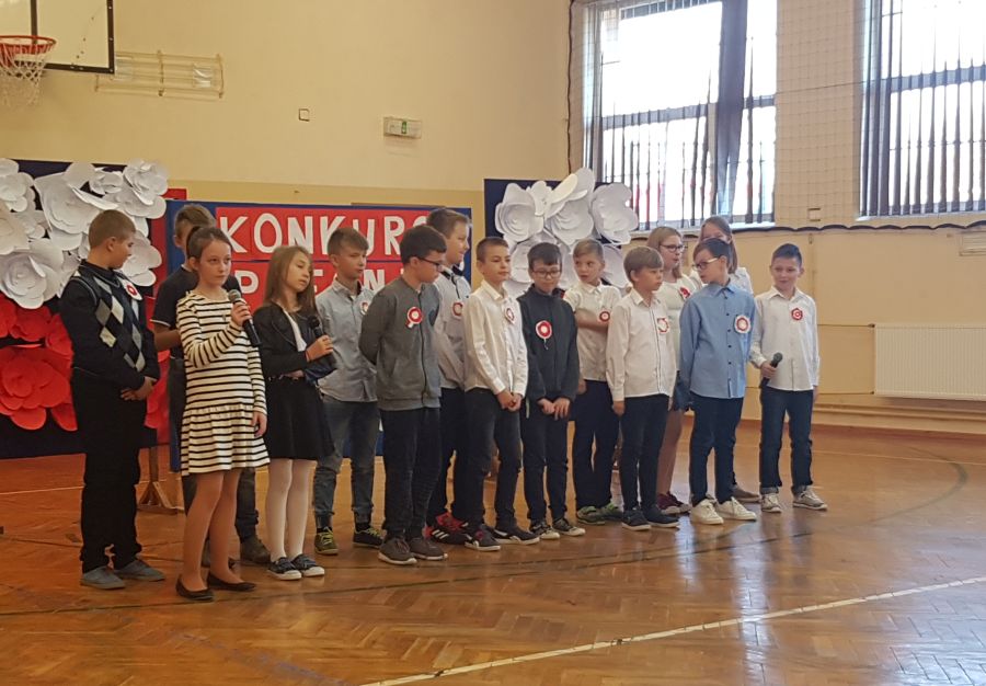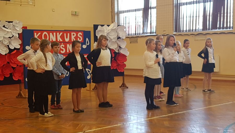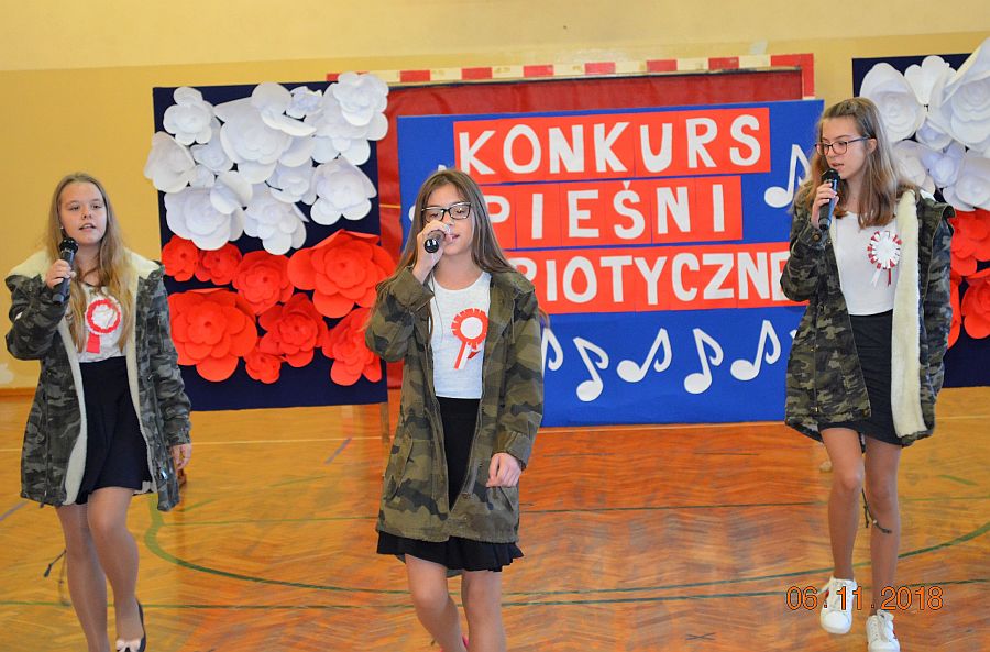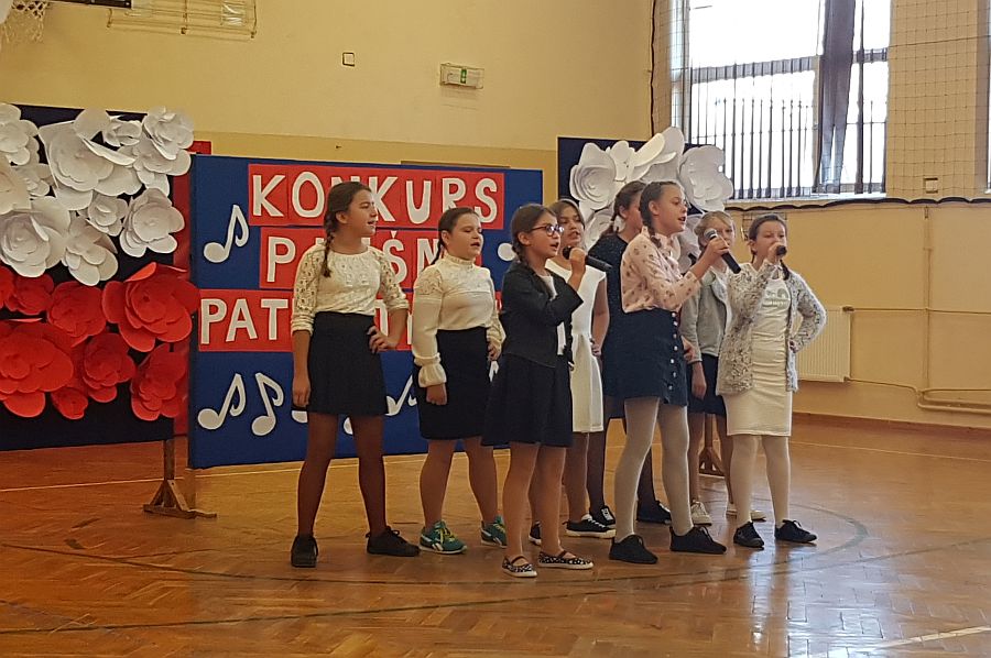 Dnia 6. 11. 2018r. w ramach Tygodnia Niepodległej odbył się Konkurs Pieśni Patriotycznej, w którym wzięli udział uczniowie klas IV - VIII i klasy III gimnazjum. Konkurs został przygotowany przez p. Joannę Dymek, nauczyciela muzyki. Każda klasa zaśpiewała na konkursie wylosowaną wcześniej pieśń o tematyce patriotycznej.