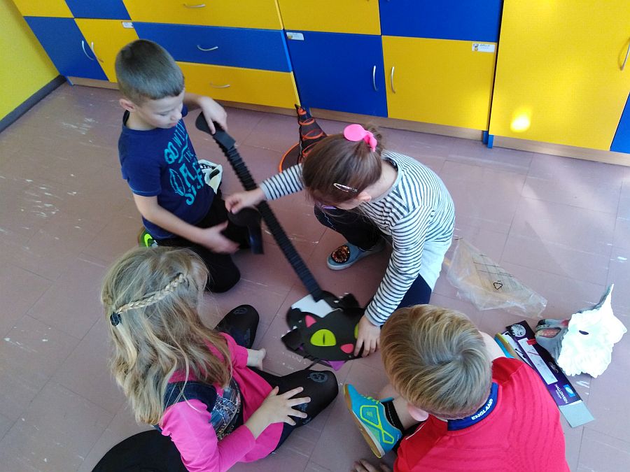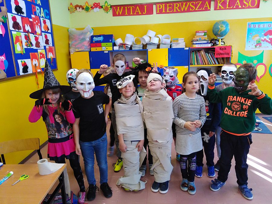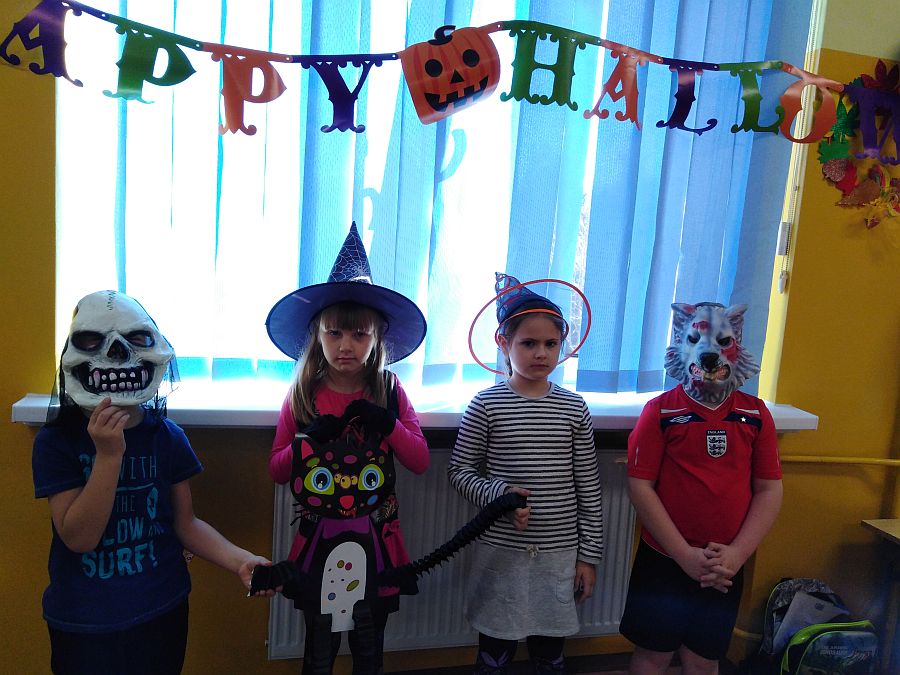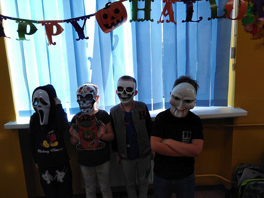 Jak co roku w naszej szkole uczniowie biorą udział w zajęciach kulturowych z języka angielskiego. Poznając kulturę i zwyczaje związane z angielskim świętem HALLOWEEN, świetnie się przy tym bawią. Zajęcia grupowe polegały na grach, zabawach i rozwiązywaniu zadań. Zwieńczeniem zajęć był słodko – słony poczęstunek.